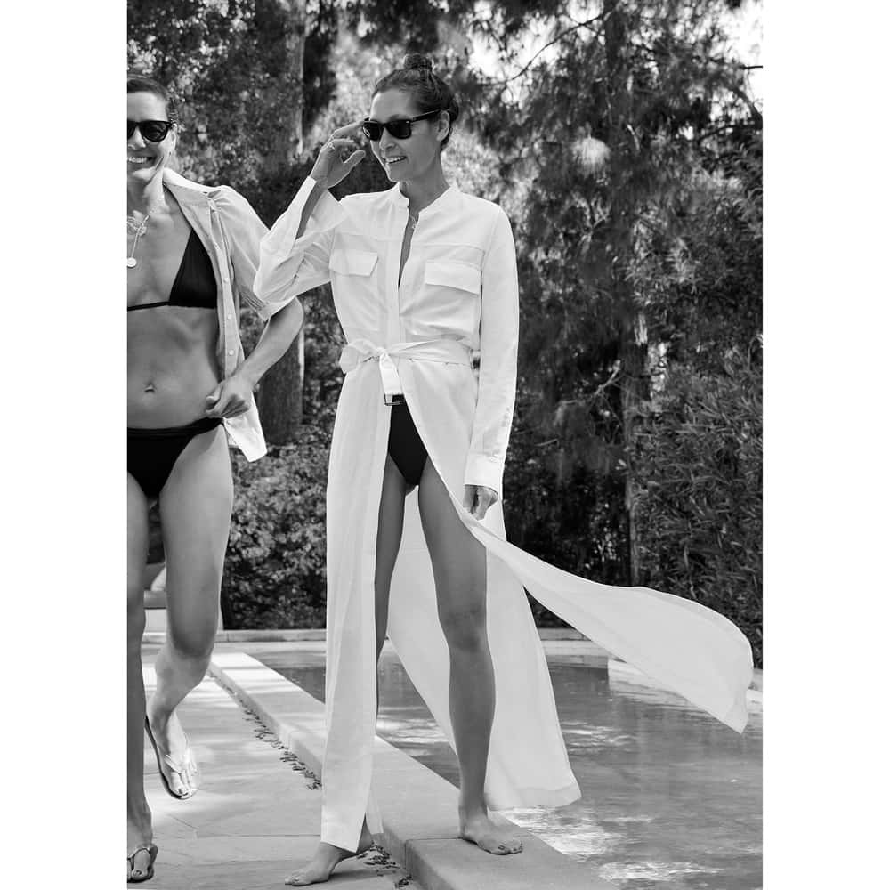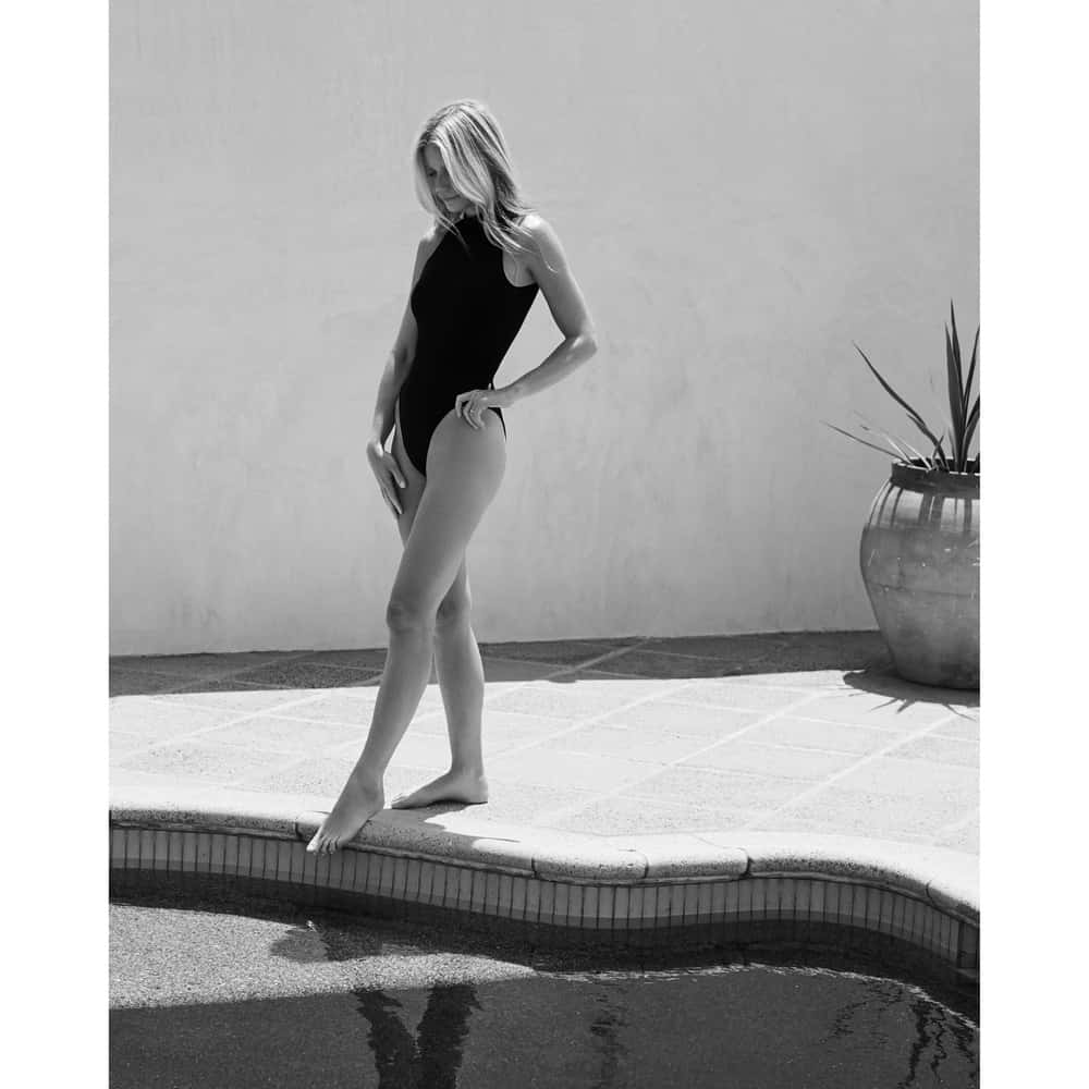 G Label's swimwear collection centers around elegance and conjures a perfect balance between glamorous and sexy. What's more is that every piece of clothing is inspired by 90s silhouettes, sporting plunging necklines and bandeau bikini tops and even invokes looks from the decade's most notable fashion icons, Cindy Crawford, Naomi Campbell, Kate Moss and Paltrow herself.