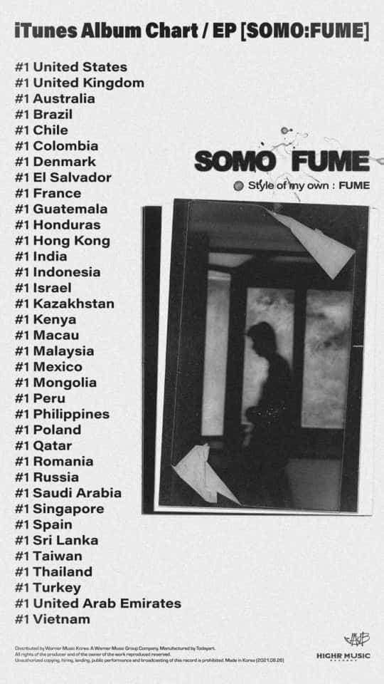 Jay B's first solo under H1ghr Music was a mini-album titled 'Somo:Fume' that was released on August 26 and has now topped the iTunes ‘Top Album’ charts in 36 countries including the US, UK, France, Spain, Thailand, Turkey, and Vietnam. H1ghr Music took to their social media platforms to share the news about Jay B’s solo album being loved globally.