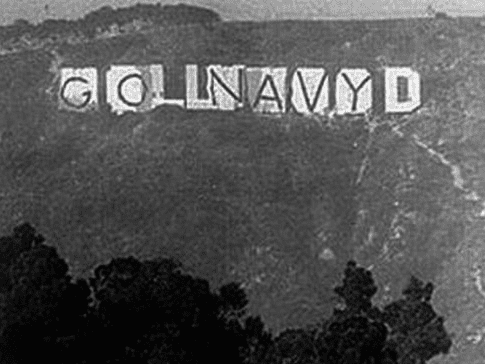In 1983, after the Army-Navy Football Game, a group of Navy Midshipmen covered a couple of letters from the Hollywood sign. The group wanted the sign to read “GO NAVY”. However, since the letters were not adequately covered, the Hollywood Sign wound up reading “GOLLNAVYD”.