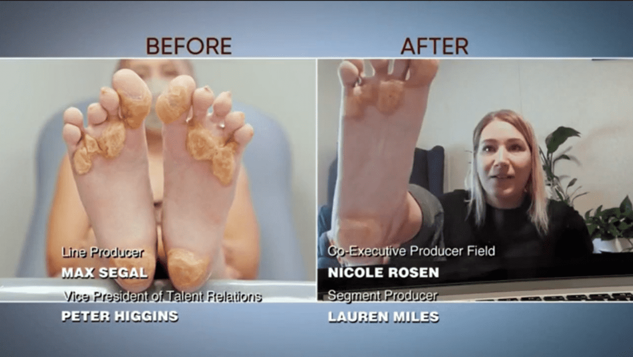 Rebecca reports that she is doing well after the procedure during their 2-month follow-up video call. Her feet are feeling better, allowing her to go about her day normally. Nothing seemed to pop off, especially the heels, once the graft was applied.