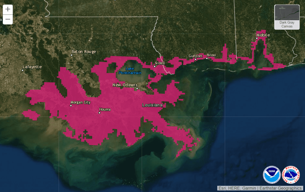 As Hurricane Ida continues to rage on The National Hurricane Center was warned of surge effects across Louisiana to the Alabama/Florida border, including Vermilion Bay, Lake Borgne, Lake Pontchartrain, Lake Maurepas, and Mobile Bay.