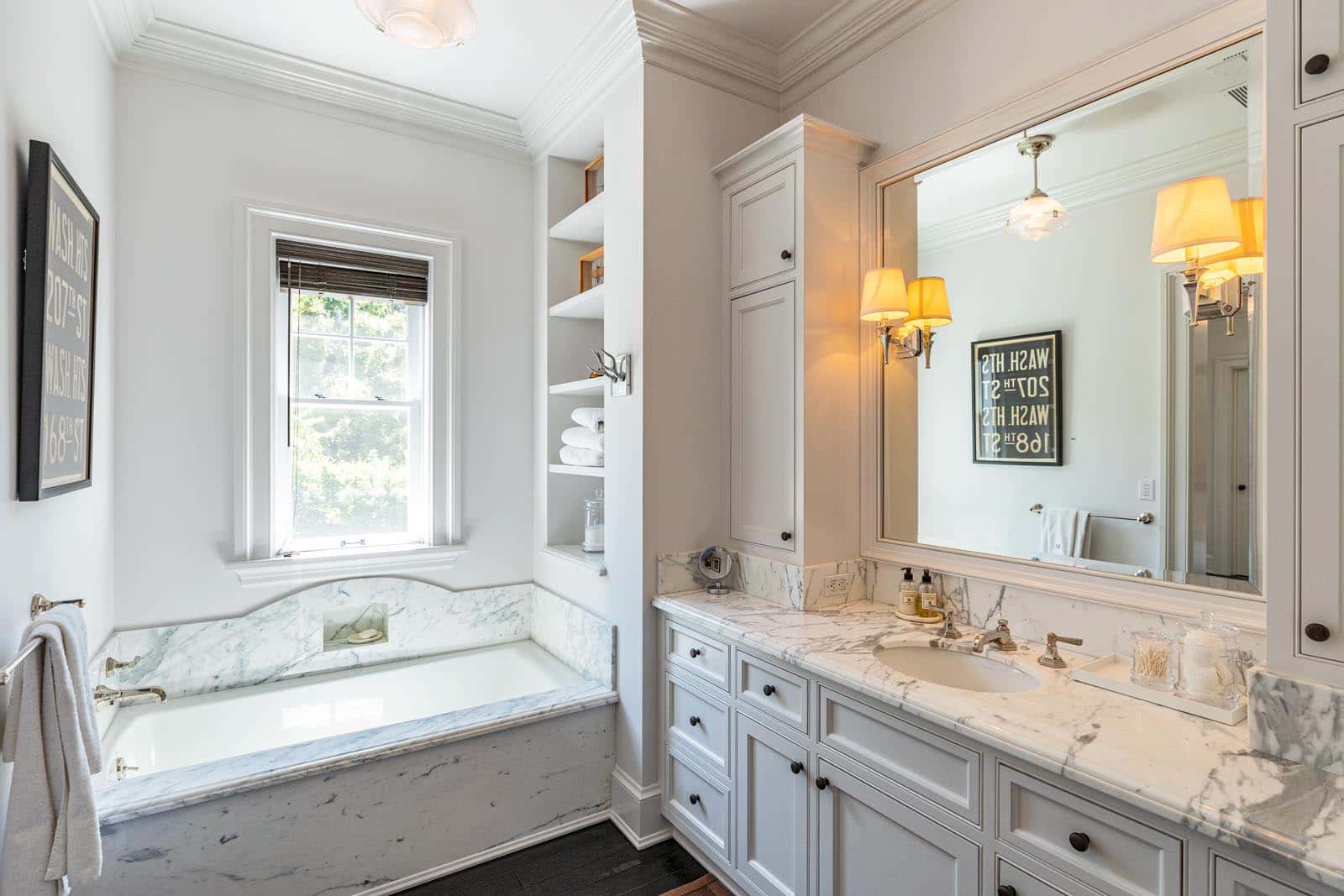 The mansion emanates classic East Coast-style vibes. It was designed by architect Don Nulty in 2009 and stretches over to 10,000 square feet. Its huge compound houses 20 rooms. This includes large open formal rooms, a huge white and cheerful family kitchen, a separate catering kitchen, eight bedrooms, eleven baths, and an office. The eat-in kitchen is fitted with white cabinetry, a large center island, stainless steel appliances and marble countertops, with bar seating as well as a breakfast area. There’s also a formal dining room with a fireplace.