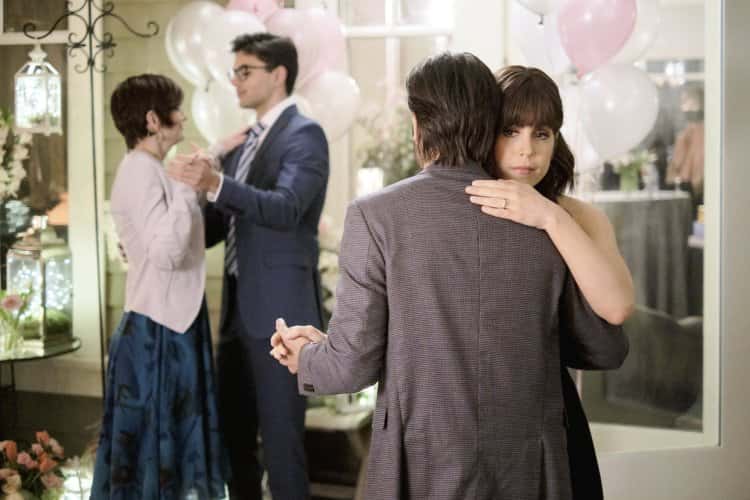 So it's of little surprise that when Elizabeth tells him it is not working out, he takes it remarkably well, probably also because he has been having some flirty moments of his own with his assistant Denise. Cut to a year later and Elizabeth is sending postcards to George and David's mother and sister from Italy, France and England. We then see her flying back home with a beret, just to drive home the point that she's now well-traveled, to attend George and David's sister Louise's engagement party.