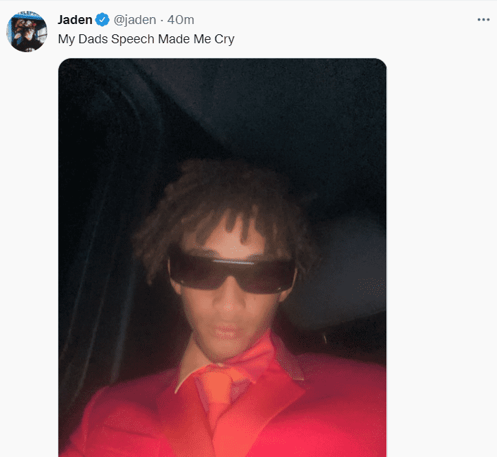 Jaden, who is very close to his father Will Smith, took to the microblogging site to share his valuable opinion right after the Oscars 2022 ended with the high-voltage drama. Though not clearly mentioning the Slapgate controversy, the ‘Icon’ hitmaker appeared to extend his support to Will Smith by saying what he did was right. The 23-year-old musician then shared a selfie of his and confessed that his father’s speech made him cry. However, he soon deleted the second post. For the unversed, Will Smith after winning the Best Actor Award for ‘King Richard’, apologized for his actions in the acceptance speech hoping that the Academy would invite him back.