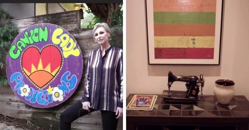 “I named the corporate entity from which I work Canyon Lady Productions because I’m a big fan, of course, of Laurel Canyon — that’s where I live,” Lynch says in a video tour of the property on People. Inside, personal mementos have been incorporated, like a Singer sewing machine that used to belong to her grandma, which now sits on a table in her foyer, and a bust of her 12-year-old rescue dog Millie, which is proudly displayed on a table in her living room. She also keeps a wall of family photos, a space to display her four Emmys, as well as a SAG Award and a few other awards, and a memorial shelf for all of her beloved former animals. “Without animals, a house does not feel like a home,” Lynch says.