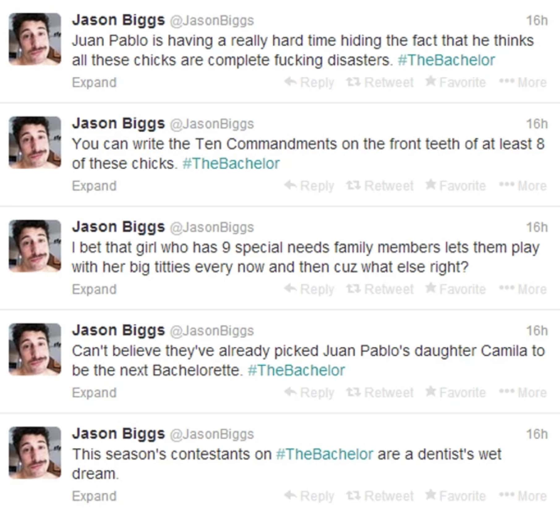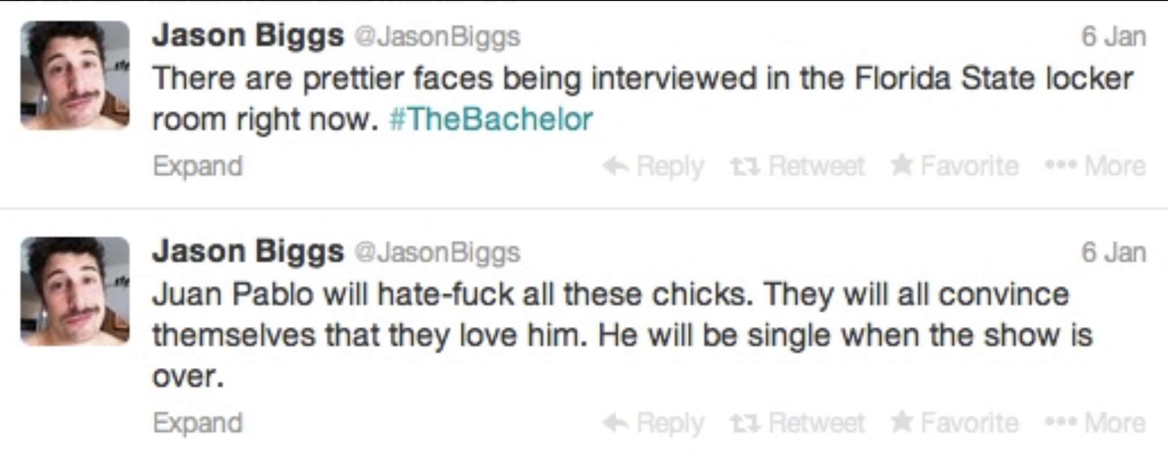 Andi Dorfman, who was the contestant then, went on to become Season 10's 'The Bachelorette' and her season wasn't without its own controversy, seeing that contestant Eric Hill passed in a paragliding accident shortly after being eliminated from the show. And like the 'true fan' that he is, Biggs had a few things to say about that as well.