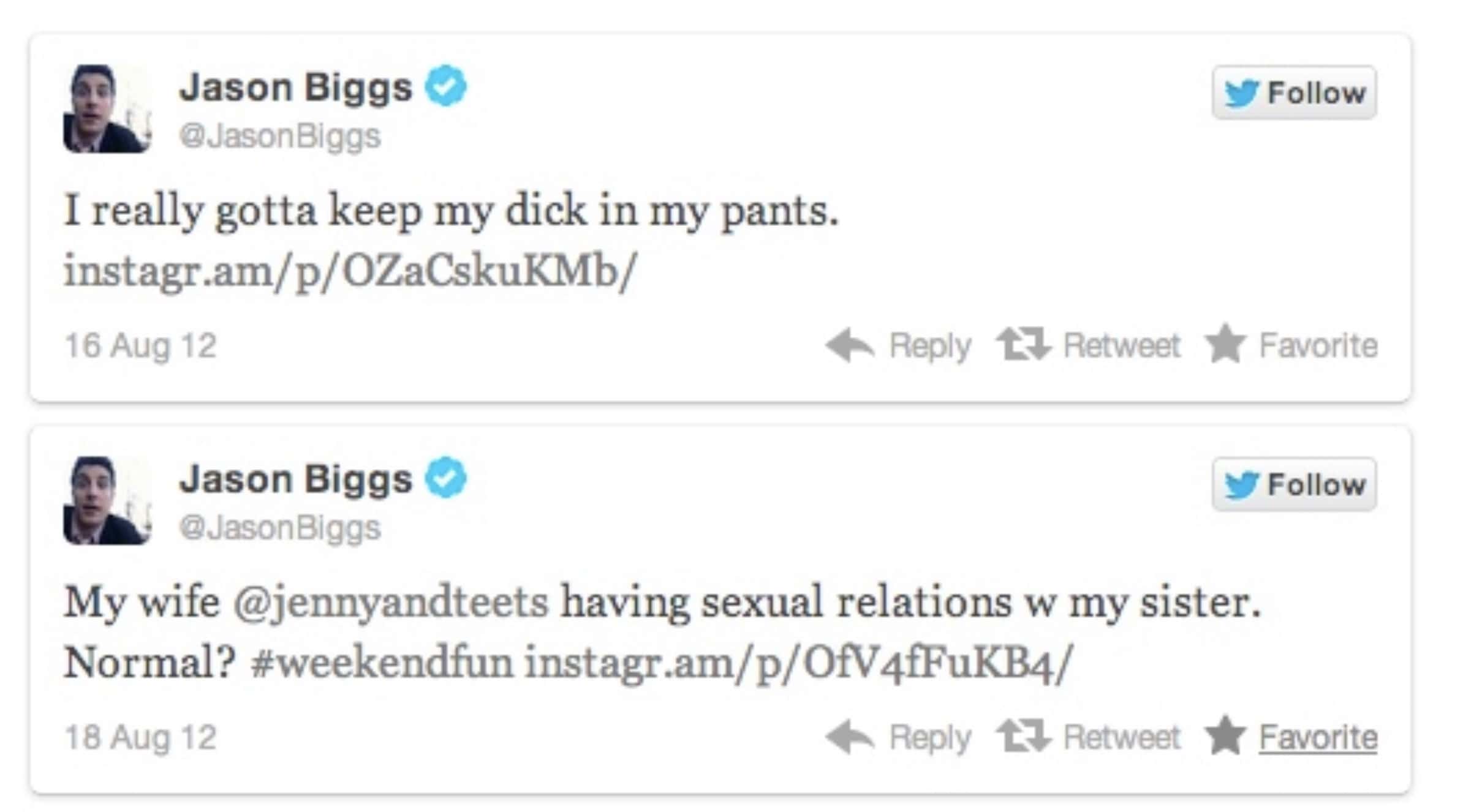 Has Jason Biggs cleaned up his Twitter act? The 'Cherries Wild' host has made some questionable tweets before