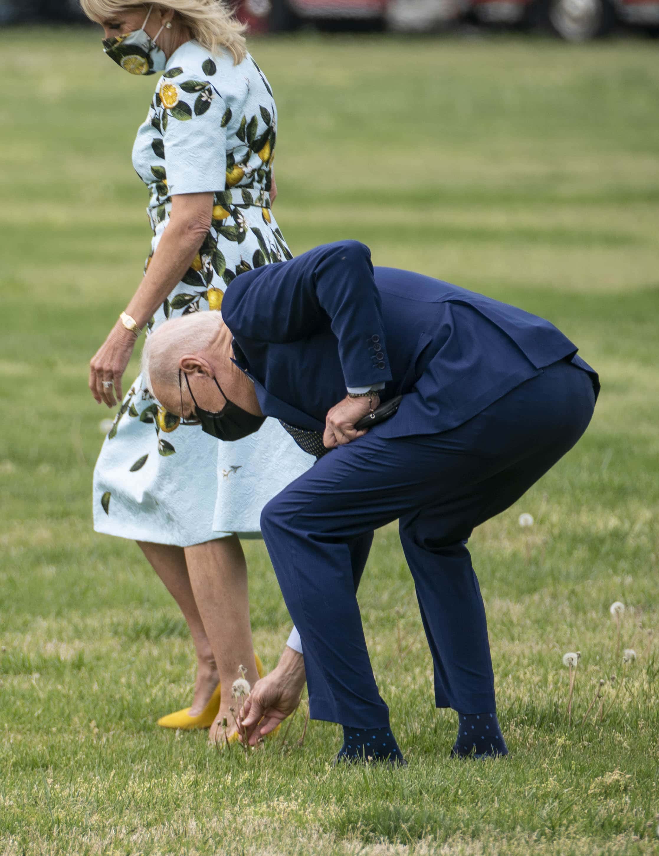 Besides her outfit grabbing headlines, the couple also drew attention after President Biden stopped on his way to Marine One, bent down, and picked a dandelion for his beloved wife. It was a picture-perfect moment, and photographers captured Joe picking the flower off the grass and handing it to his wife. Jill gladly accepted the romantic gesture and carried it with her to the helicopter.