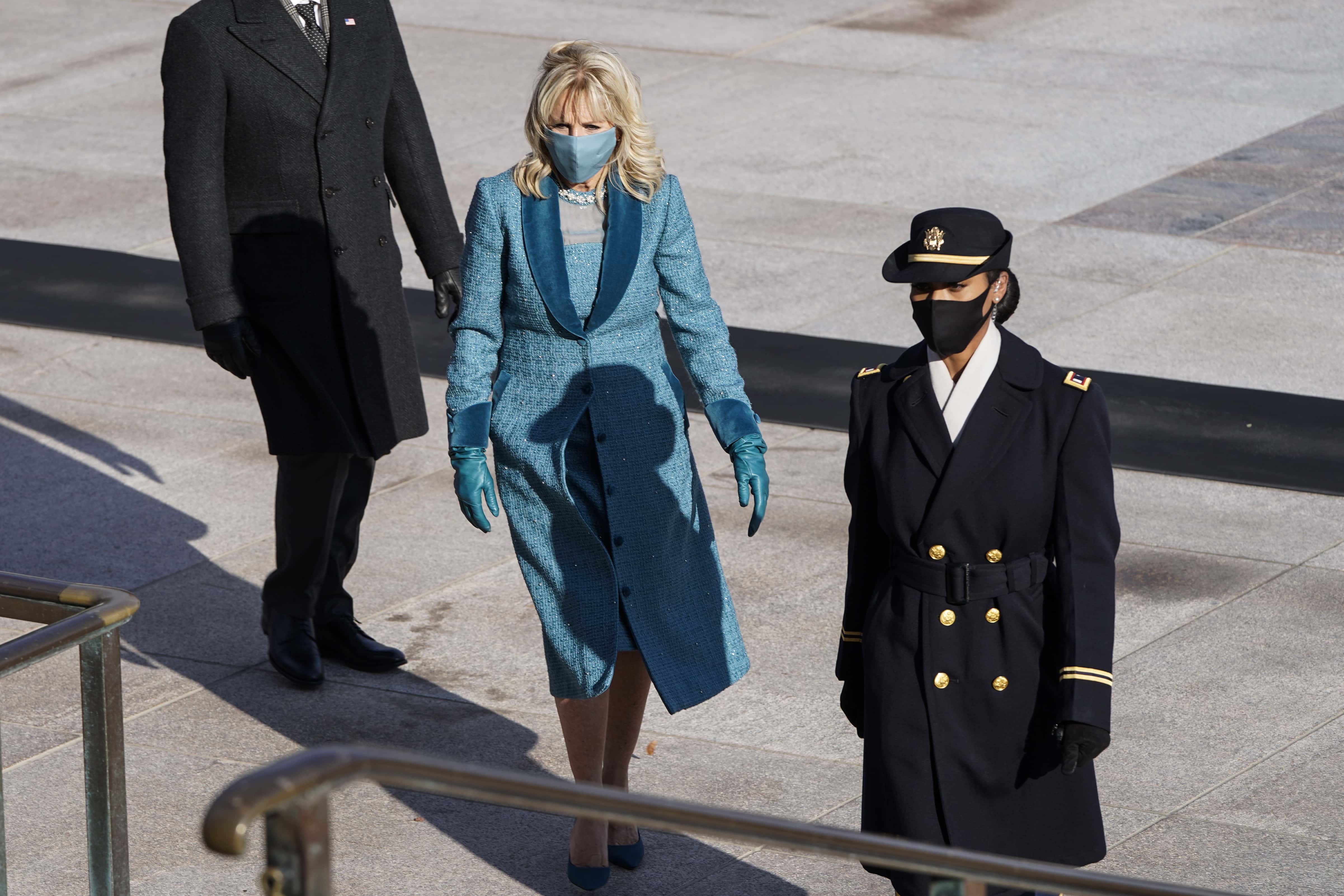 The morning event saw Jill donning an ocean blue tweed blazer and matching silk mask by New York-based designer Alexandra O'Neill for Markarian. “The color blue was chosen for the pieces to signify trust, confidence, and stability. The look was carefully crafted by a small team in the heart of New York City's Garment Center and hand-finished by O'Neill in her West Village studio,” the design house stated. People on the internet also praised the 69-year-old’s both outfits. One user wrote, “Things I love about the inauguration so far: -JLo speaking Spanish -Lady Gaga's dress -Dr. Jill Biden's outfit -Amy Klobuchar wearing Minnesota Gopher colors -Mike Pence showing up -the pledge in American Sign Language WE HAVE A NEW PRESIDENT!”