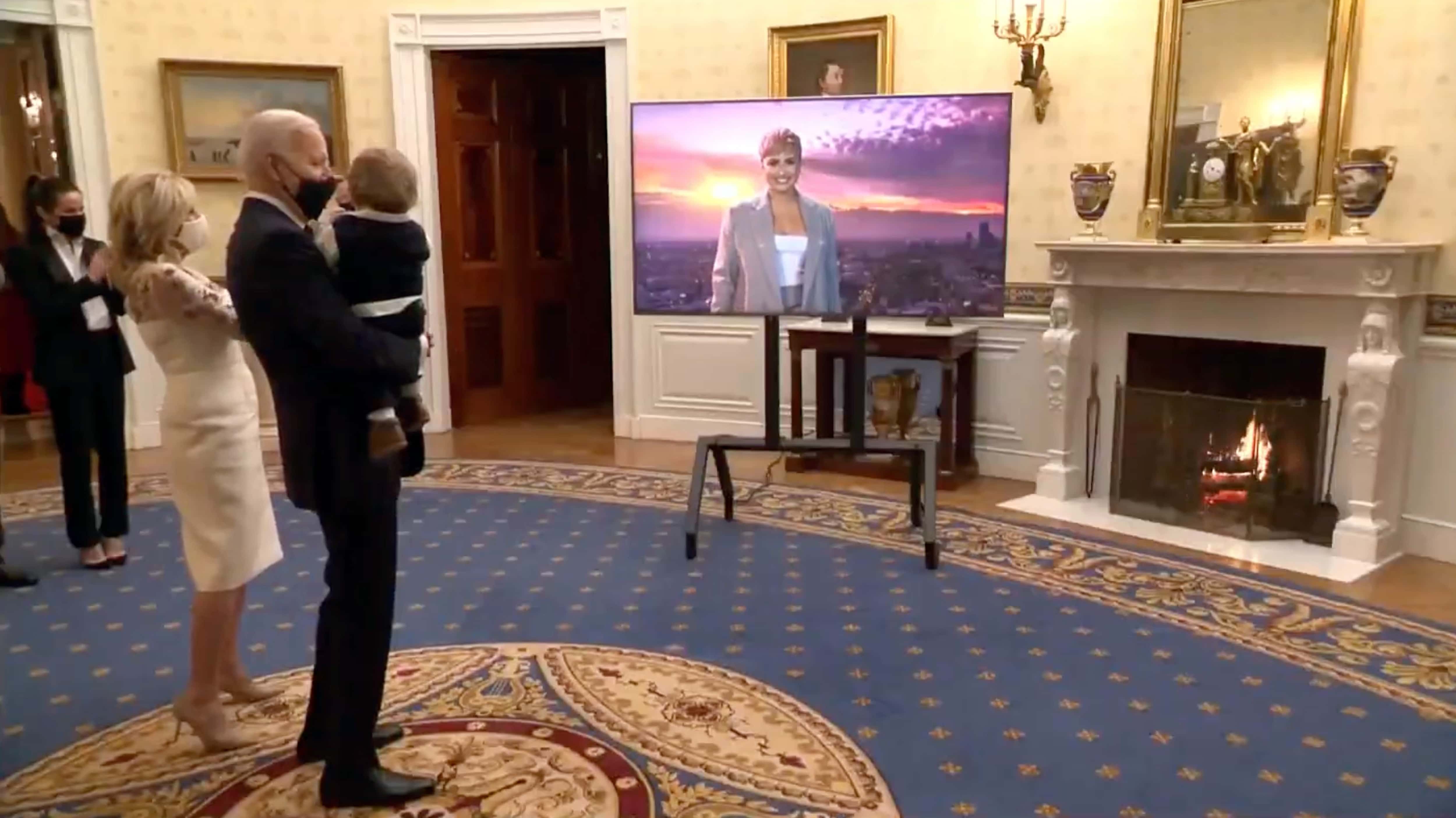 Biden took little Beau in his arms as he watched his inauguration concert from within the White House. Biden danced along to the song ‘Lovely Day’ by Demi Lovato, while little Beau pointed at the screen. Little Beau was also on the stage with his parents to watch his grandfather’s swearing-in.