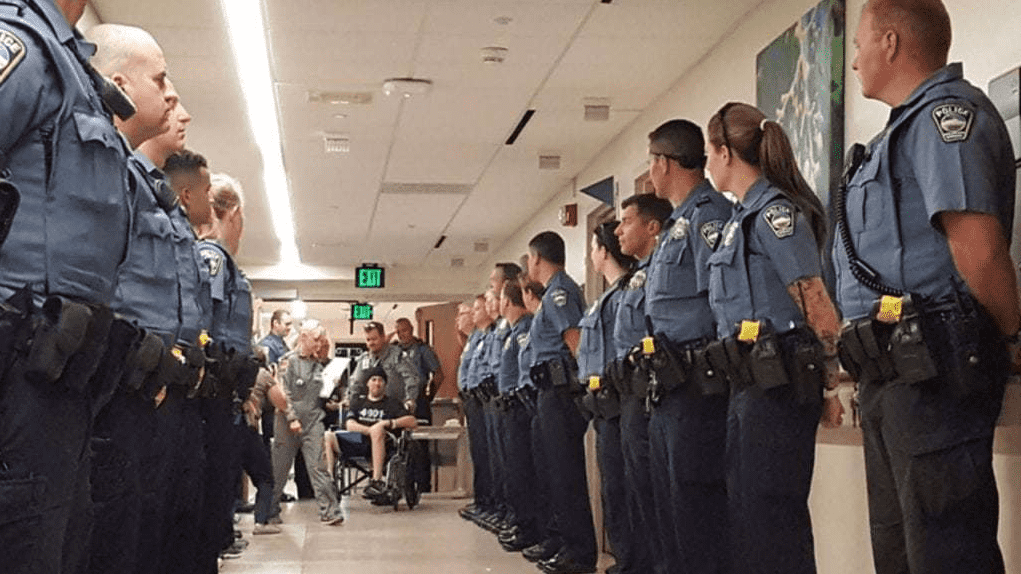 Officers with the Colorado Springs Police Department lined the halls of the UCHealth Memorial Hospital to honor Duzel as he left for rehabilitation.