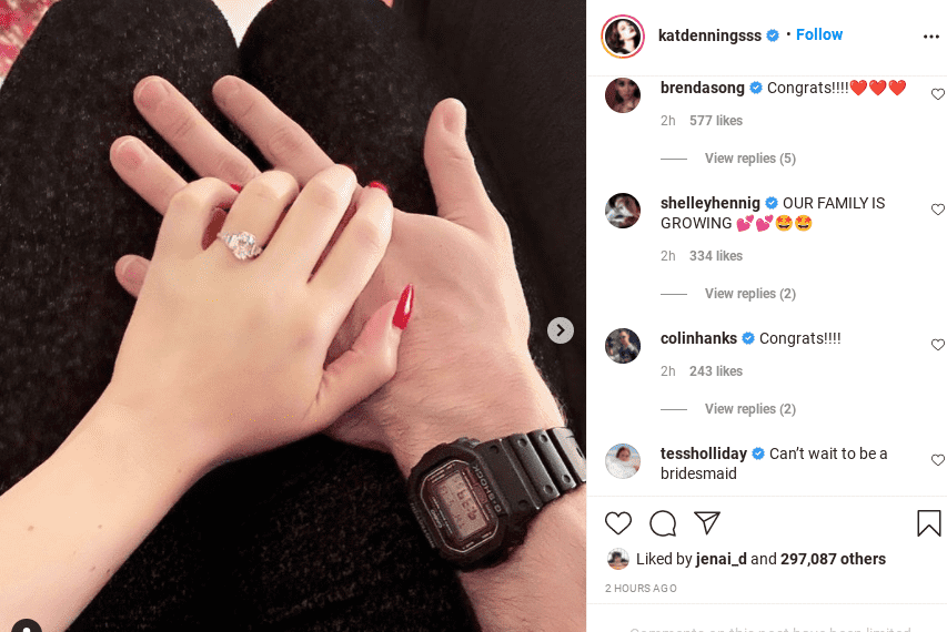 Kat's engagement announcement was flooded with congratulatory messages from celebrities and fans on Instagram and Twitter.