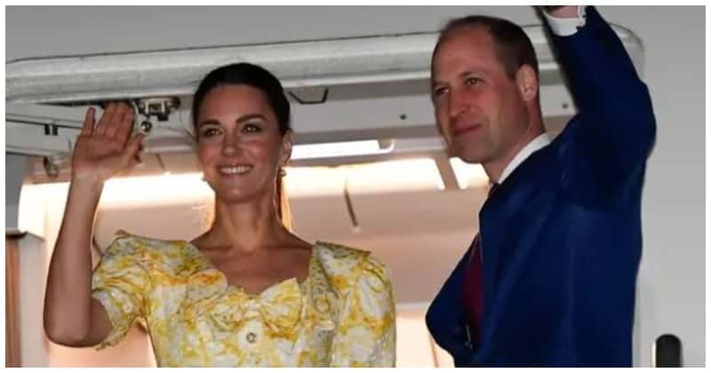 Kate was photographed arriving at Lynden Pindling International Airport on Sunday, 27 March wearing a yellow patterned Alessandra Rich gown.