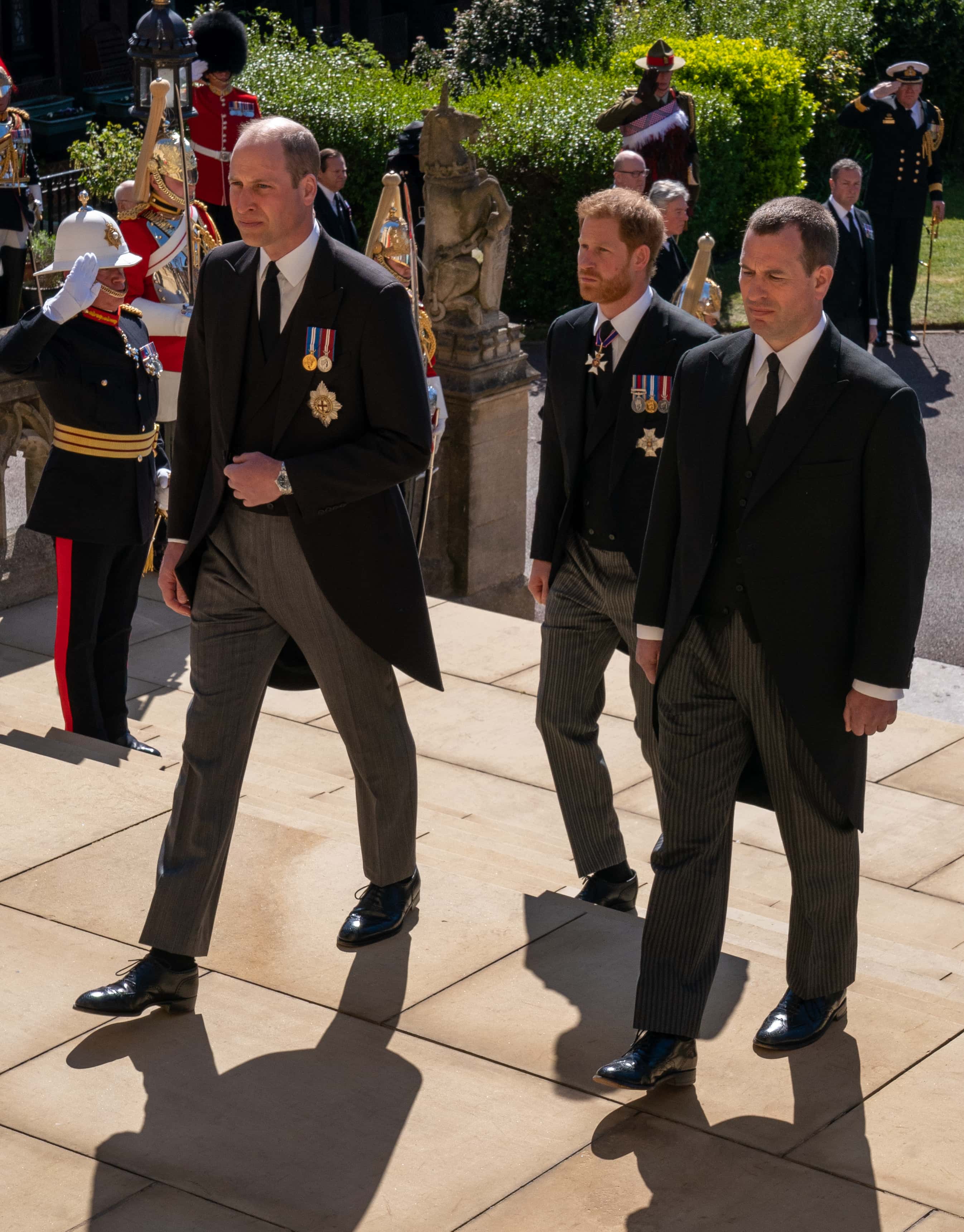 Harry and William solemnly walked behind Philip's coffin for a short procession around the castle, joining senior royal members, Charles, Anne, Andrew and Edward. Upon entering the chapel, the brothers were seated apart as the family was split onto the two sides of the quadrangle.