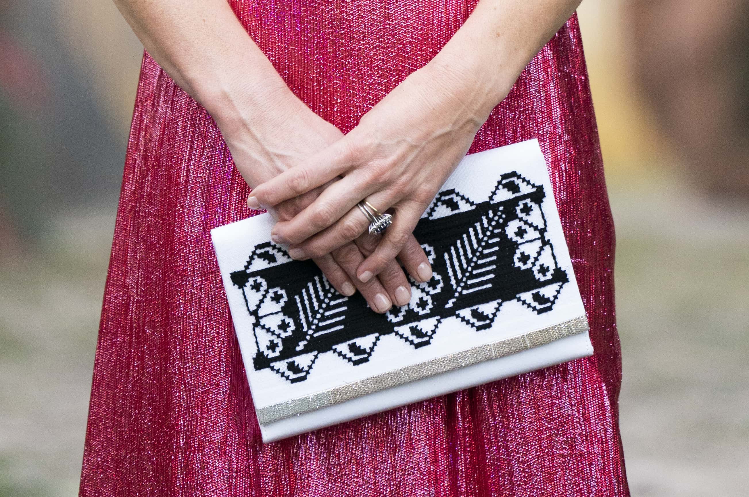 The Duchess has already worn some amazing outfits on this tour so far. The 40-year-old wore a virbant floral tea dress by Tory Burch, complete with delicate capped sleeves, tiered midi-skirt and ruched bodice to cinch her svelte figure on the second day of the tour. Kate stepped out with a woven colour-block handbag by Anya Hindamarch, oversized sunglasses and vibrant chandelier earrings in royal blue by Sezane.