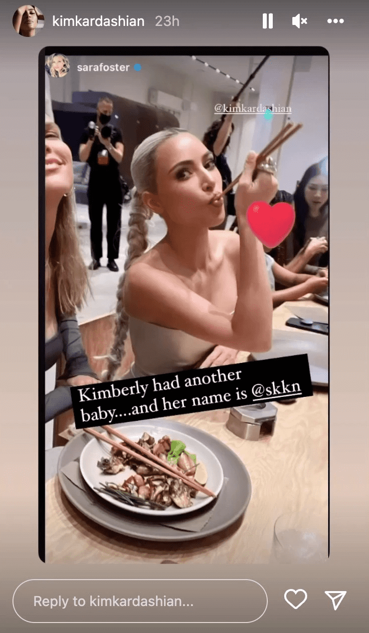 The founder of SKKN looked lovely in a figure-hugging silver bandeau dress with braided platinum hair. Kendall Jenner and Kim's daughter North were also there at the launch party. At the occasion, model and actress Sara Foster shot a photo of Kim and her. Kim posed with chopsticks in her mouth while the actress smiled. "Kimberly had another baby... and her name is @skkn," she added a heart sticker and captioned the image. Amid all the excitement surrounding the launch fans couldn't help but notice Kim's "fake eating."
