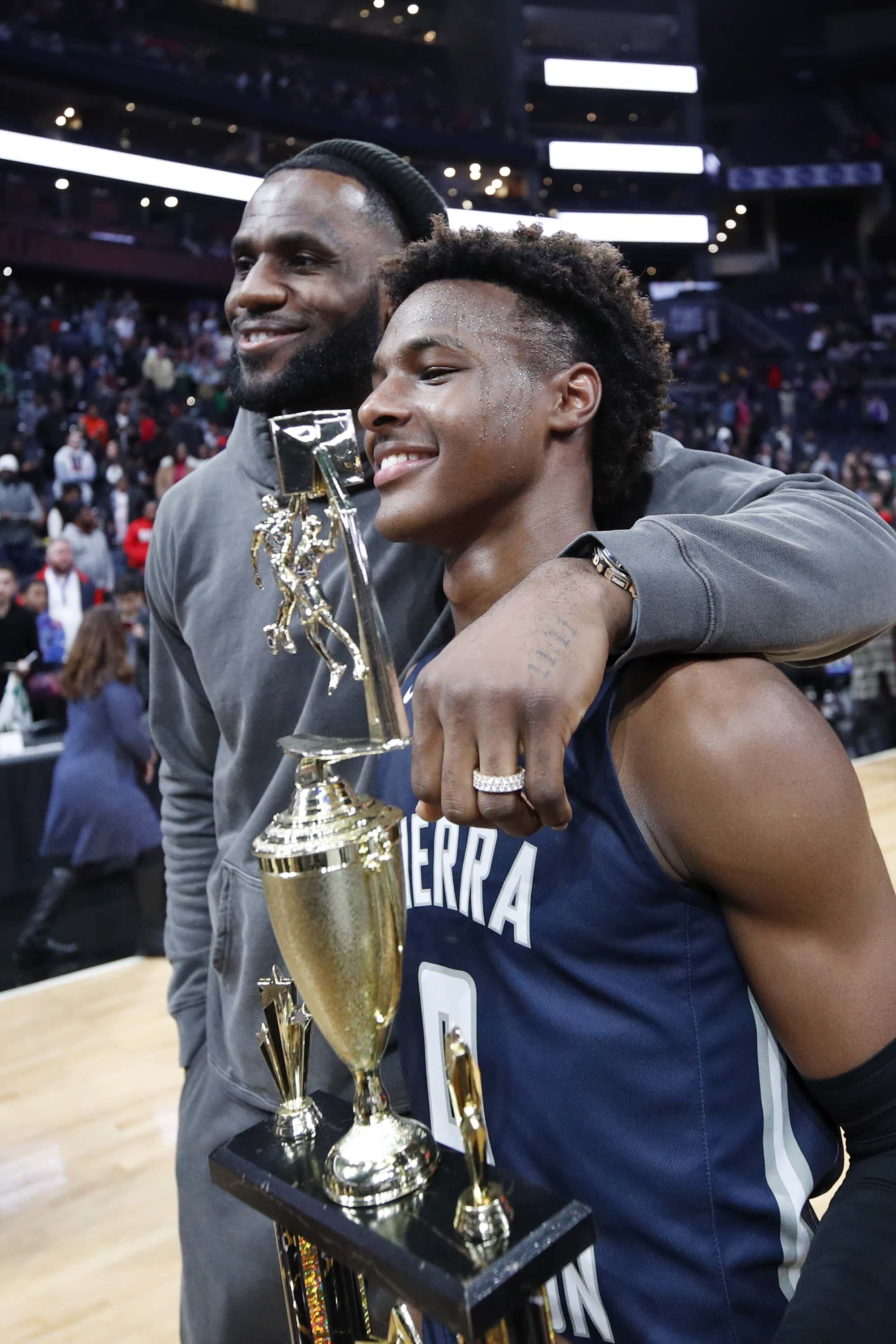 LeBron James couldn't be prouder as he attended his son Bronny's high school basketball game which saw him clinch the MVP trophy.
