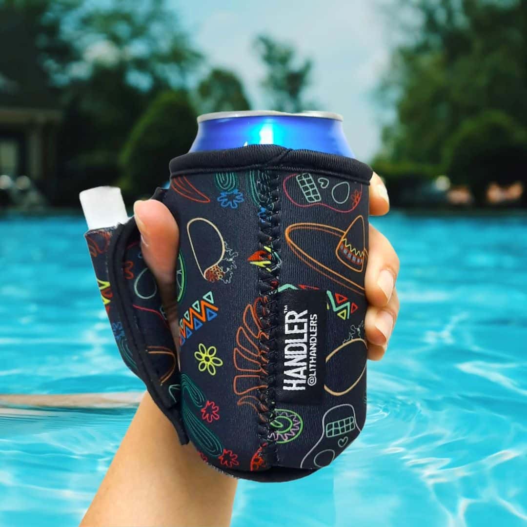 As per Destiny Padgett, the founder of Lit Handler's Linkedin profile -- 'These patent pending Handlers offers a type of support that you didn’t even know you needed. We offer 11(and growing) sizes of neoprene can coolers with a handle in the cutest prints! These Handlers also have a pocket built into the handle to help keep your chapstick, lighter or Juul(tm) close by at all times. Now your epic stories can start with “Watch this!” instead of “Hold my beer”.'