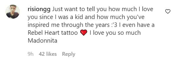 Fans and followers conveyed their love on the comment section. One said, "Just want to tell you how much I love you since I was a kid and how much you've inspired me through the years :'3 I even have a Rebel Heart tattoo ❤️ I love you so much Madonnita". Another added, "We are all beaten by life but the important thing is to get up and you know how to do this very well!😍"