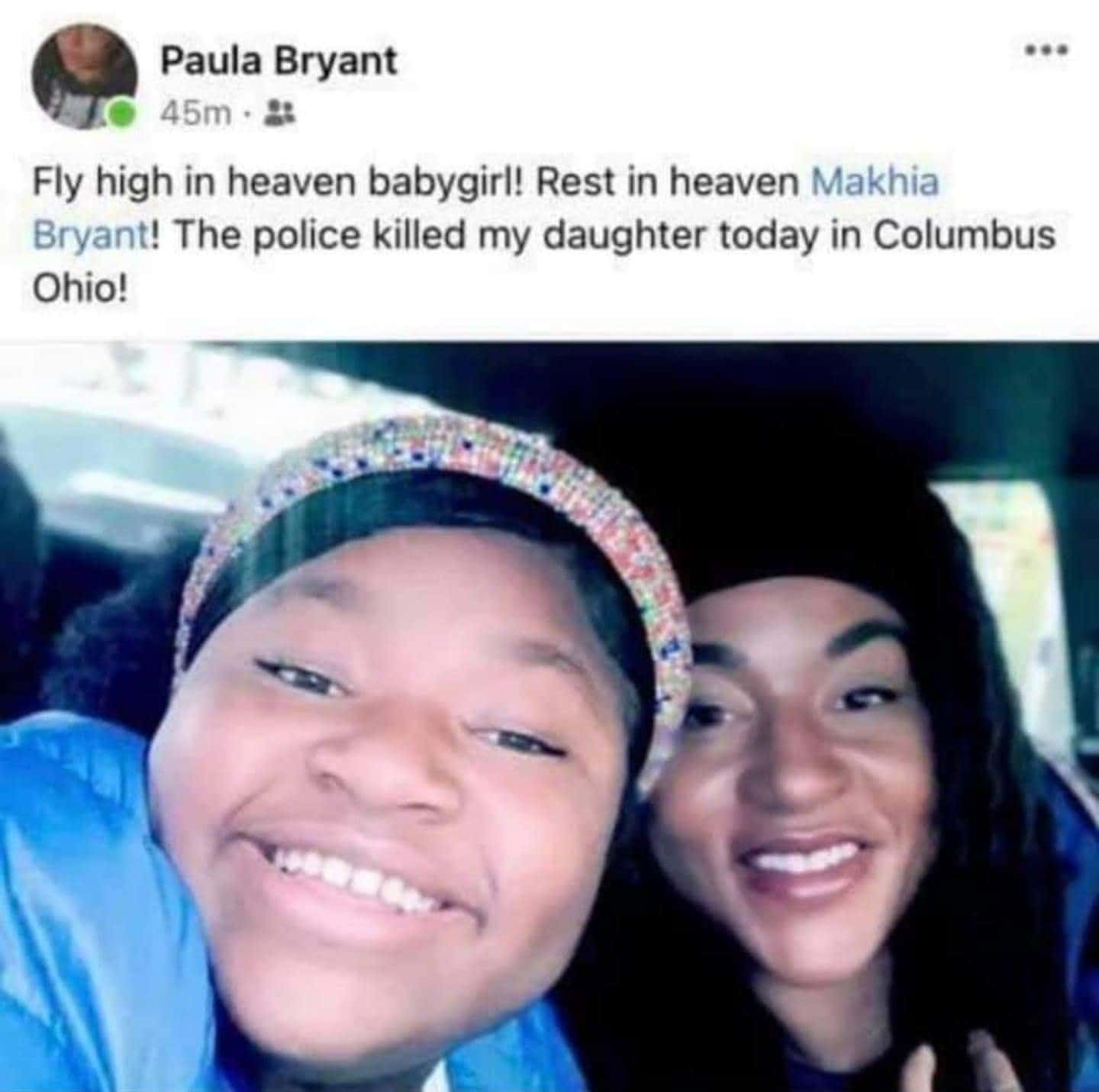 “Makiyah Bryant was shot today 4-5 times by the police of Columbus Ohio during the reading of the Derick Chauvin verdict. all she had on her was a knife and SHE was the one who called the police. she was only 15 years old. #SayHerName,” one tweet read and another said, “Makiyah Bryant was shot four times by this cop just after Derek Chauvin was found guilty of murder. she was not dangerous. she called for help, she was acting in self-defense. she was fifteen years old. a child. #SayHerName