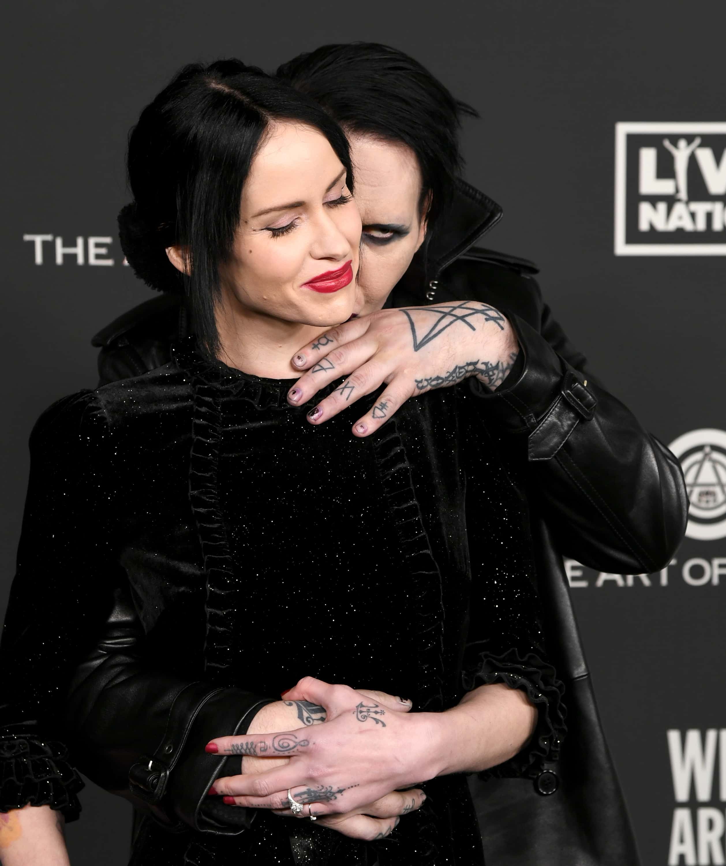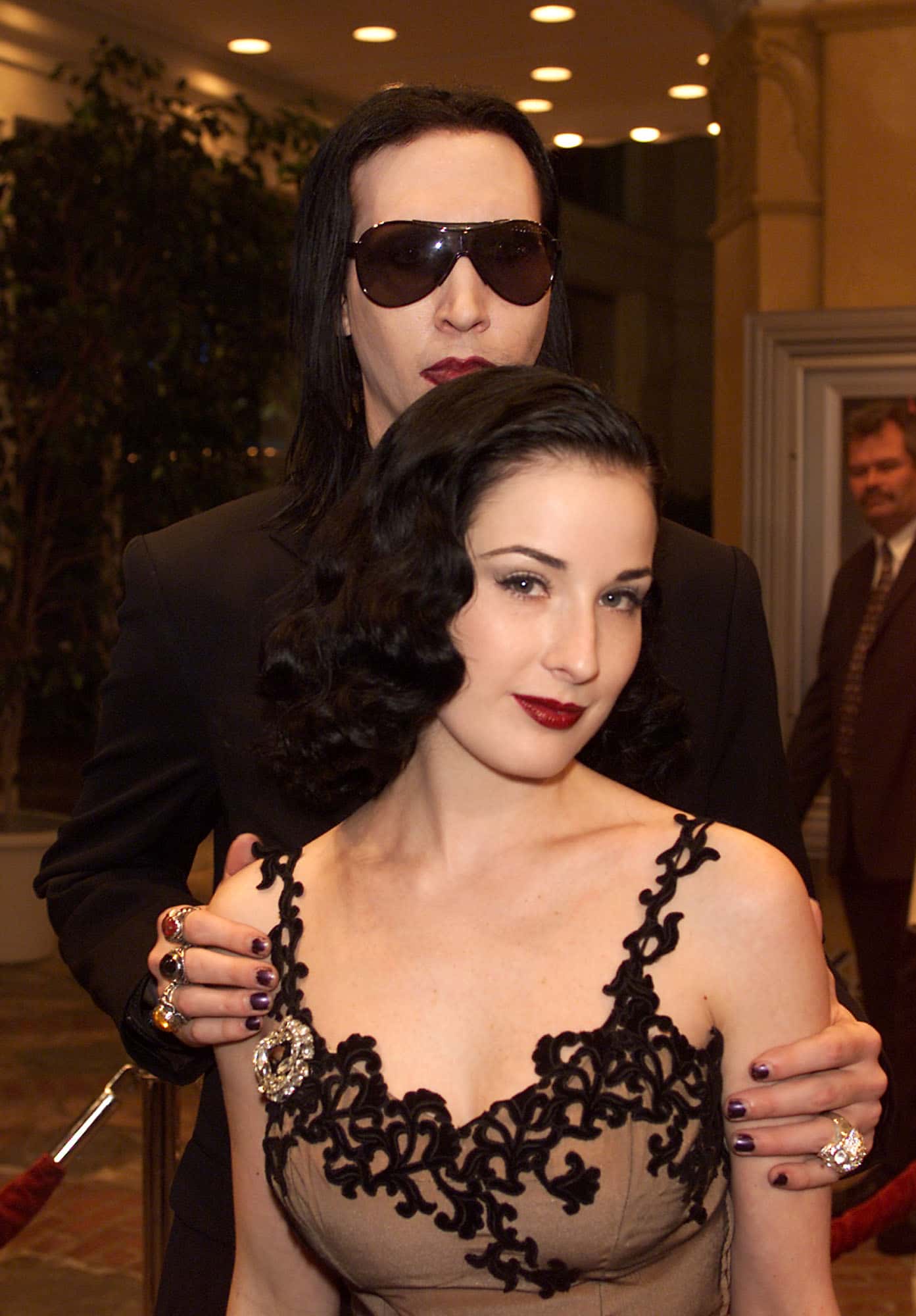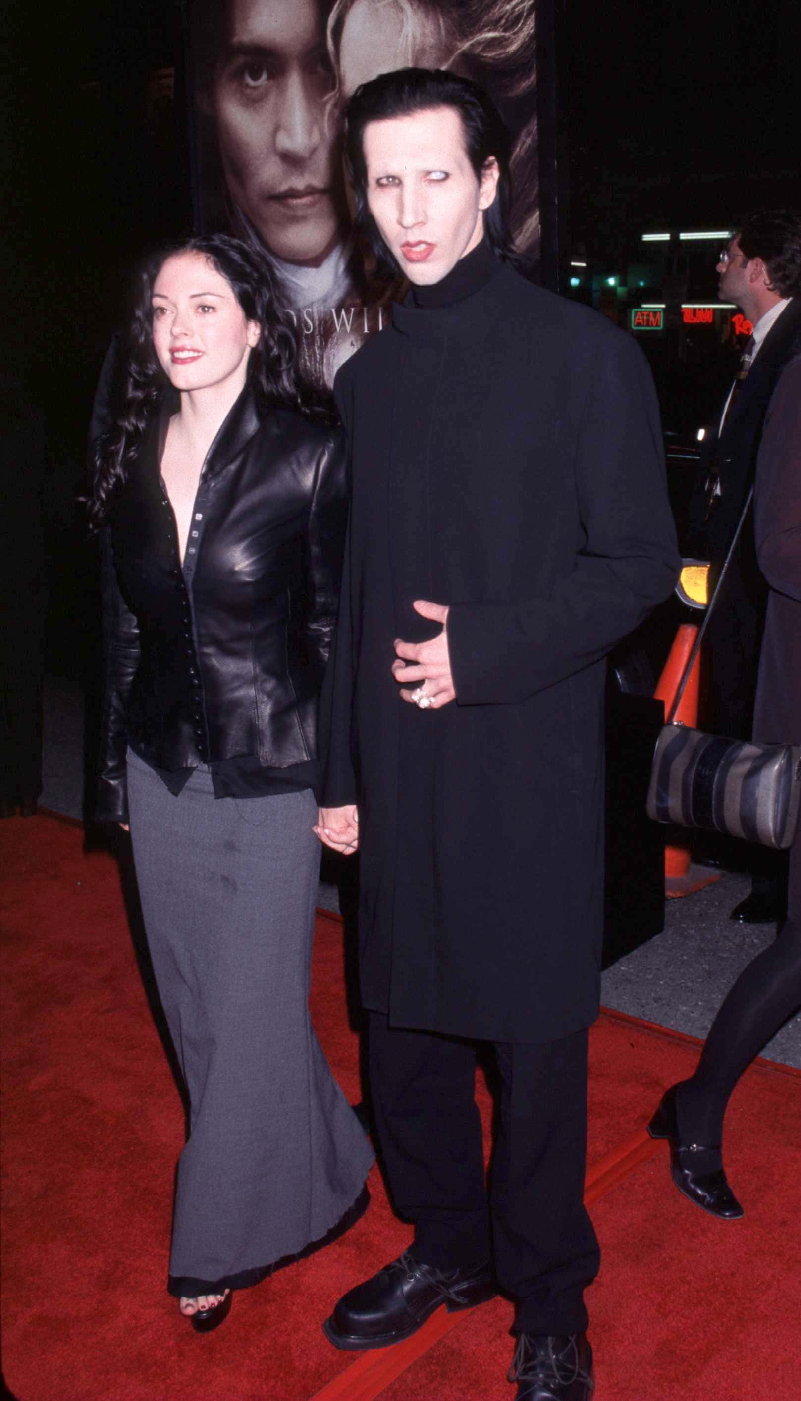 Manson's first high-profile relationship was in late 1997 when he began dating actress Rose McGowan. Known for her roles in television shows such as 'Charmed' and 'The Doom Generation', McGowan and Manson were in a highly public relationship for almost four years, from 1997 to 2000. The couple, who got engaged in 1998, made several controversial appearances at public events such as the 1998 MTV Video Music Awards where McGowan's mesh dress attracted much attention and went on to become one of the most iconic and controversial outfits in the history of VMAs. In 2000, McGowan ended her relationship with Manson and called off their engagement citing "lifestyle differences".