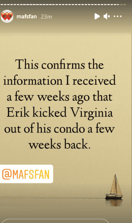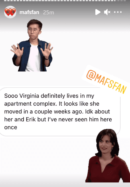 As per a recent post on Reddit, which features posts by Instagram page @mafsfan, the couple is allegedly not living together, seeing that Lake is said to have 'Kicked Virginia out of his condo.' Coombs is also allegedly living in an apartment complex and Lake hasn't visited her the entire time. This has led to speculation regarding the couple's marriage, seeing that Redditors believe that they are only together for the cameras. "I feel like one of two things is going on: They’re not together but need to pretend to be until the final reunion episode airs for some contractual reason. (Edit: I forgot they’re on Couples Cam. Maybe they need to fake it until that storyline airs?)