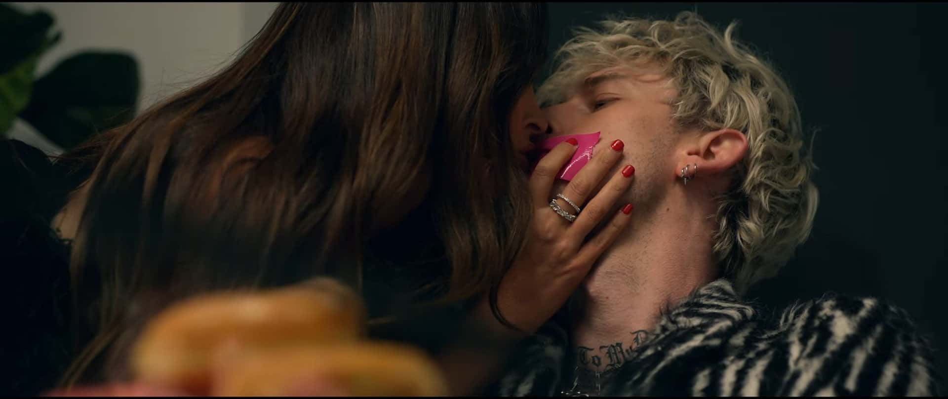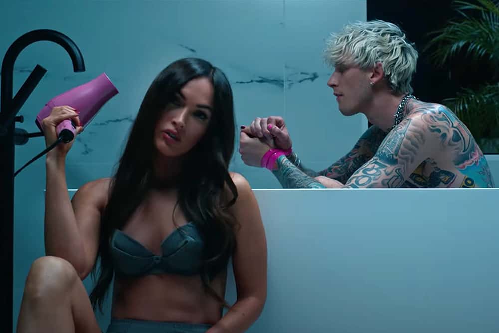 Machine Gun Kelly's steamy hot music video for his new first single 'Bloody Valentine' from his upcoming album 'Tickets to My Downfall' is out and oh boy, it might make your jaw drop. Megan Fox fiddles with his heart as the duo flirt in a relationship of pleasure and pain. Directed by Michael Garcia, the video begins with the pair in bed. Wearing a white crop top and white Calvin Klein underwear, Fox tapes his lips with pink duct tape and later takes it off to feed him donuts while his wrists are tied up. The erotic clip ends with an electric shock after she flings a hairdryer into his bath. The lyrics go: "In my head, in my head/I'm callin' you 'girlfriend', what the f**k?"