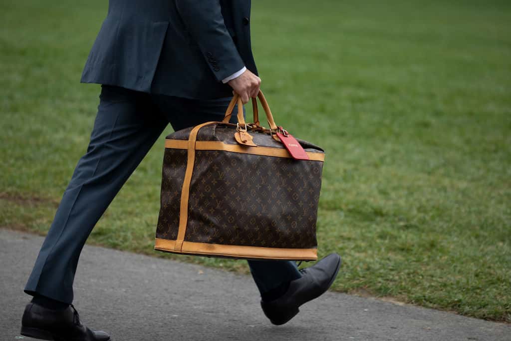 In another rare glimpse, a White House staffer was seen carrying Melania's Louis Vuitton luggage which is tagged FLOTUS.