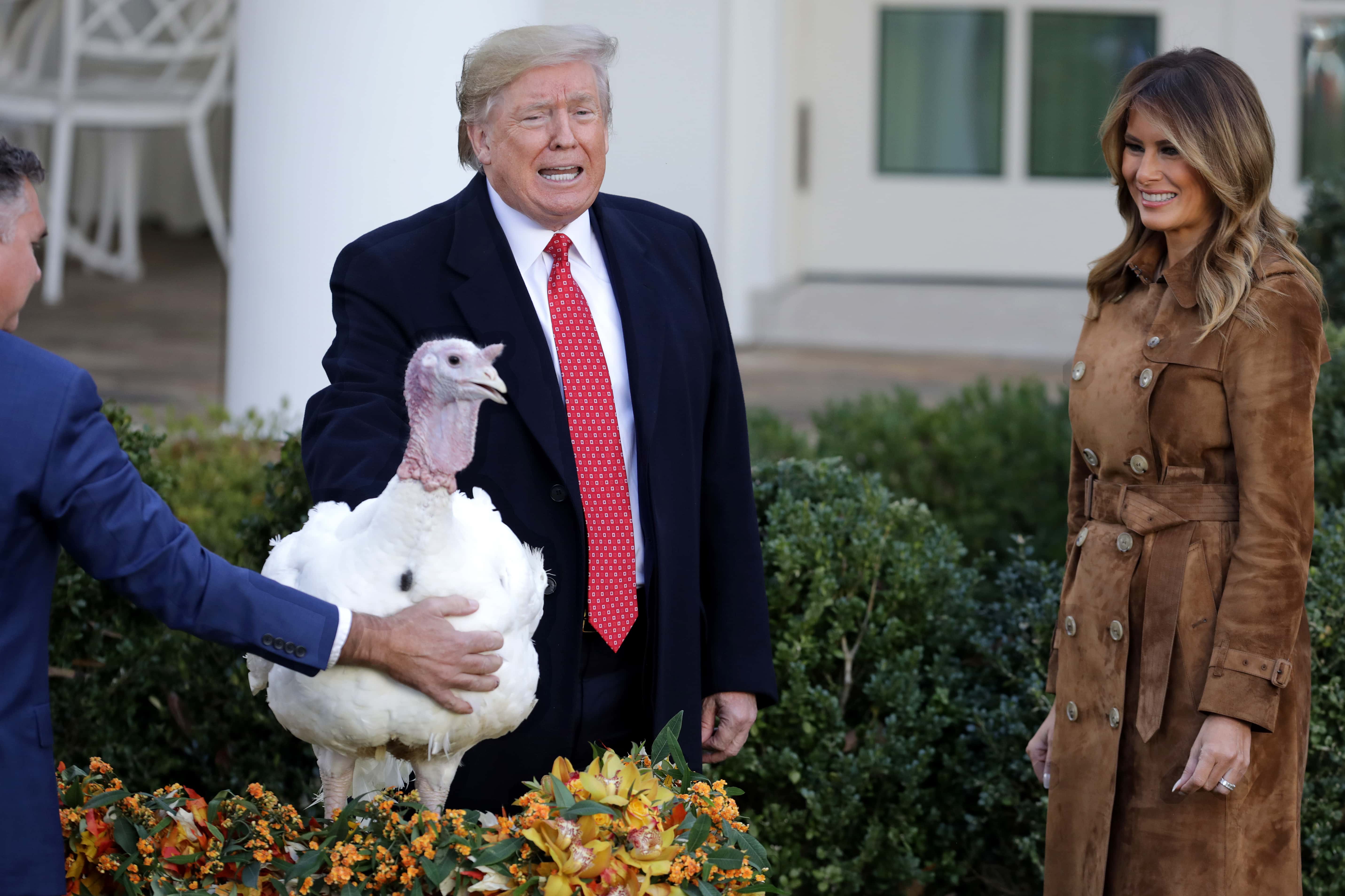 Melania Trump trolled for all-brown suede look at turkey pardoning ceremony: 'Did she repurpose an old brown suede couch?'