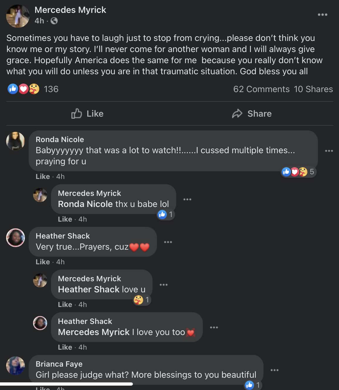 In a post referencing the situation, she wrote: 'Sometimes you have to laugh just to stop from crying...please don’t think you know me or my story. I’ll never come for another woman and I will always give grace. Hopefully, America does the same for me because you really don’t know what you will do unless you are in that traumatic situation. God bless you all’.