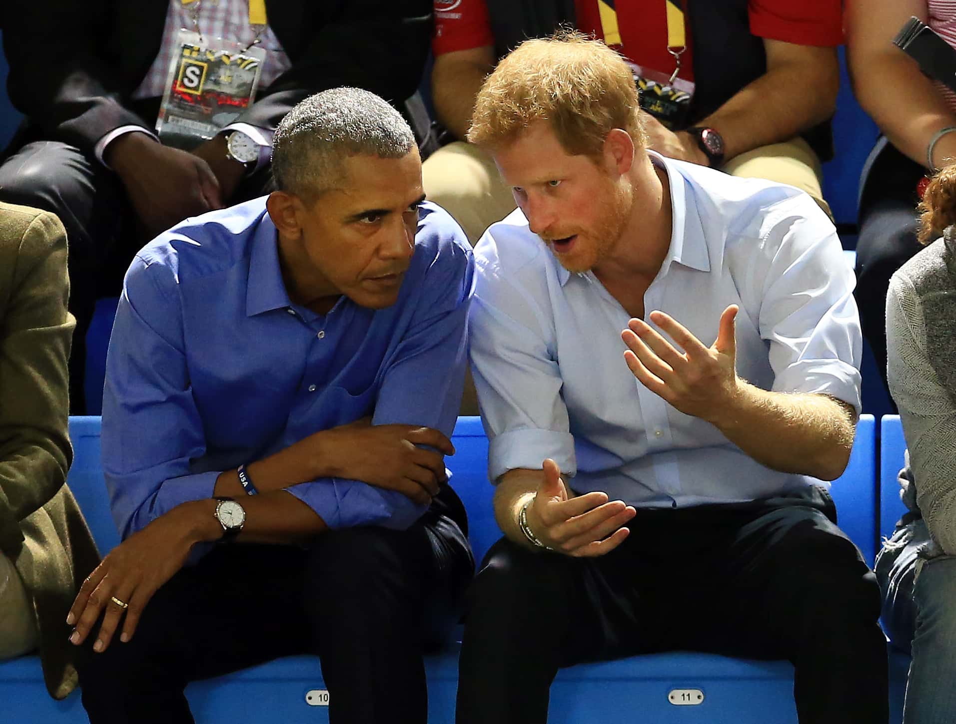 Michelle hasn't expressed her siding with one side or the other, but she did tell Access Hollywood that she urged the couple to "forgive" the Royals. The Obamas had met the Queen in 2009. They met William and his wife Kate Middleton, in 2011 and 2016. Prince Harry's friendship with the Obamas has been over a mutual interest in humanitarian and military issues, and the inspirational Invictus Games for injured veterans.