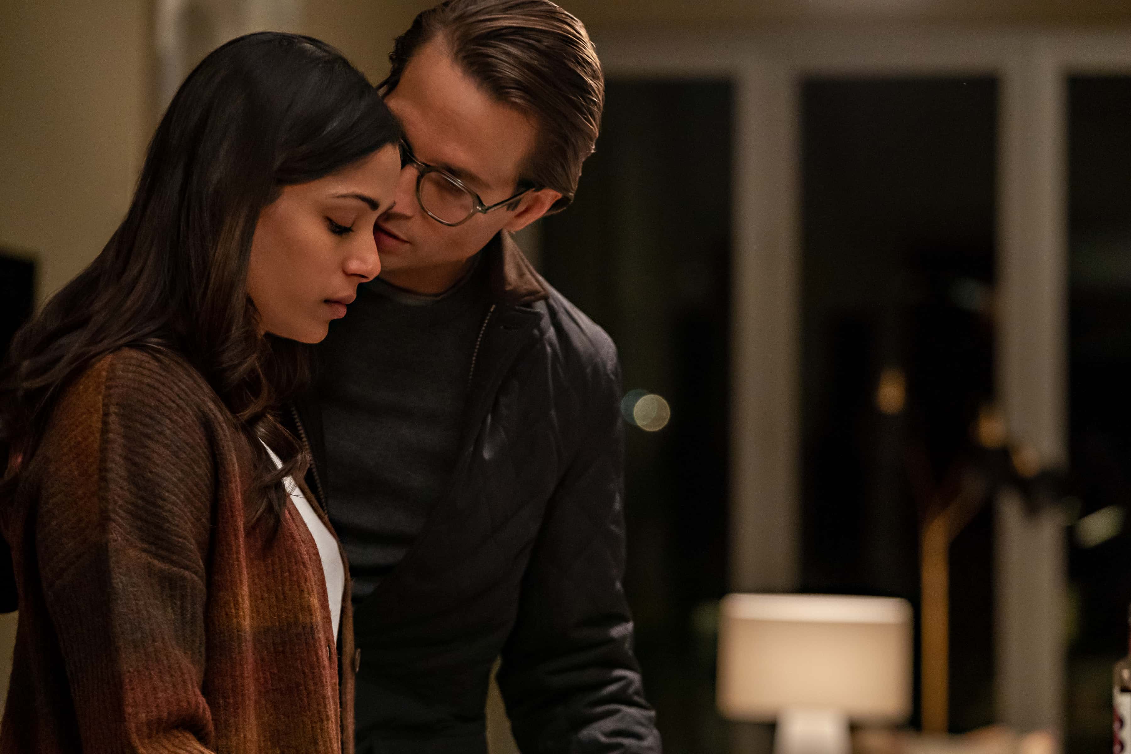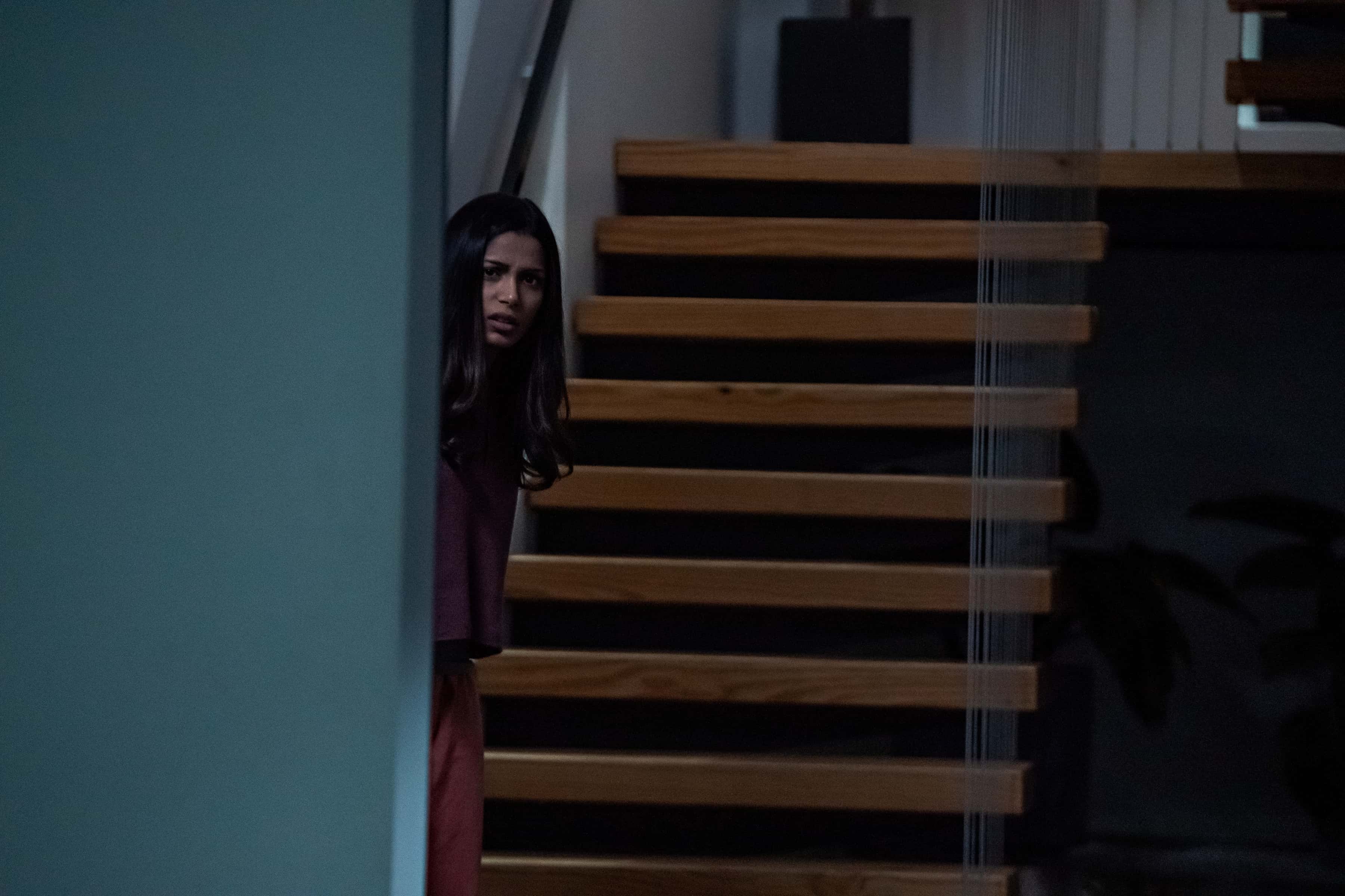 The harrowing experience brings out different sides to the characters leaving viewers second-guessing the seemingly regular people. Meera the counselor when not asking at her job, begins to ask questions surrounding the suspicious behavior of her husband. Putting on her sleuthing hat, she sets out to look for clues. The movie has plenty of moments which have you questioning the characters' reliability. A still shows Henry on alert and defensive when he's close to making mistakes around Meera. Logan Marshall-Green showcases his acting chops well, flashing viewers with creepy, menacing looks. Entwined with her husband's inconsistencies surrounding his relationship with the attackers is the case of the missing girl Christine who is the daughter of one of the suspects. Sticking to the regular thriller recipe, shocks and jumps are delivered in the form of sudden character appearances with exciting music, but not often, which is a shame for a thriller.