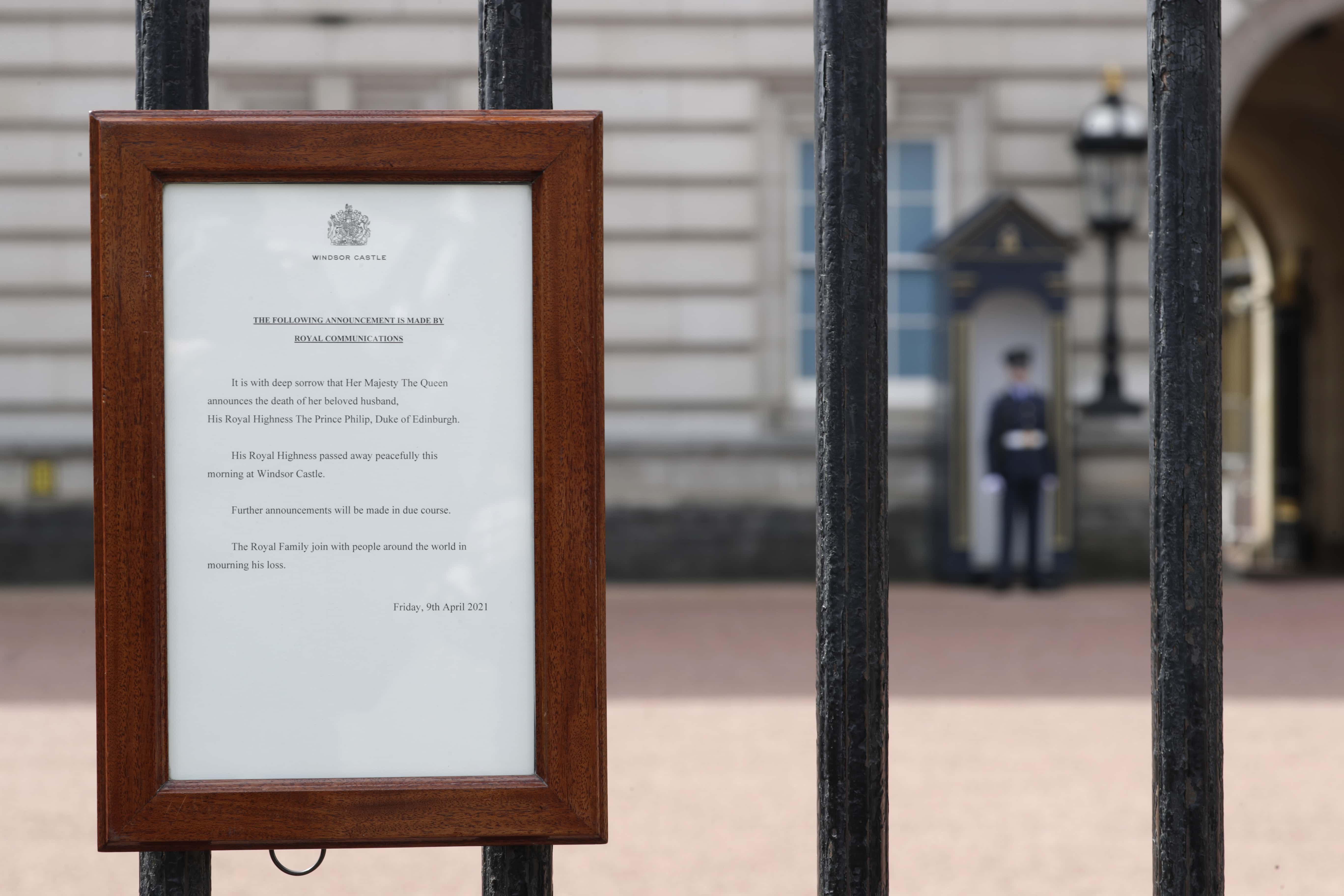 Information will be relayed to ambassadors, heads of state and diplomats first, while the press and public are kept in the dark. When the palace is ready, they will issue a brief statement via the Press Association (PA) and other global media outlets conveying the Queen's passing. Traditionally, the BBC was the first to receive the news but that is no longer the case. The palace will also place a black-edged notice at the gates of Buckingham Palace, and the website will go black as it did when The Duke died.