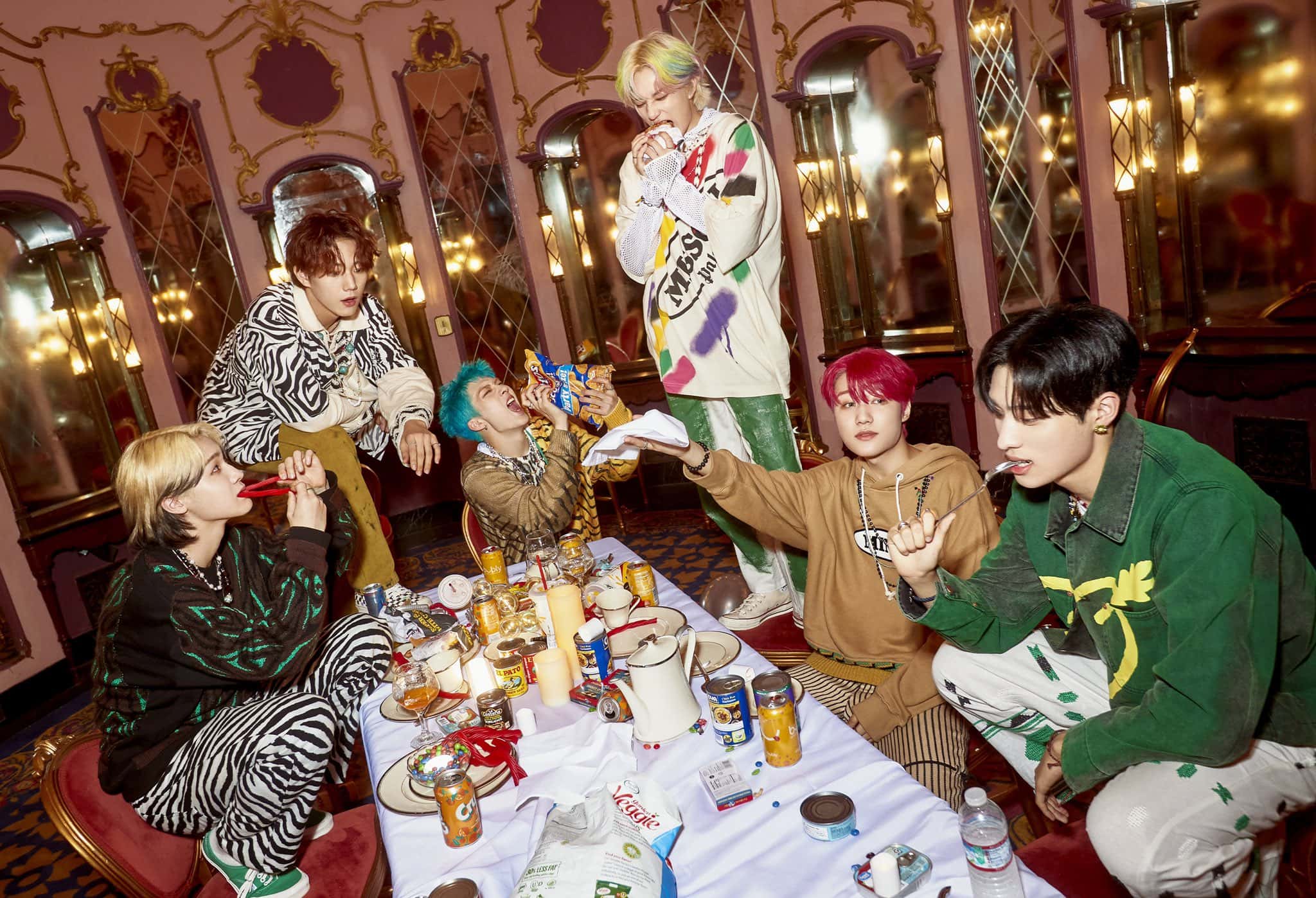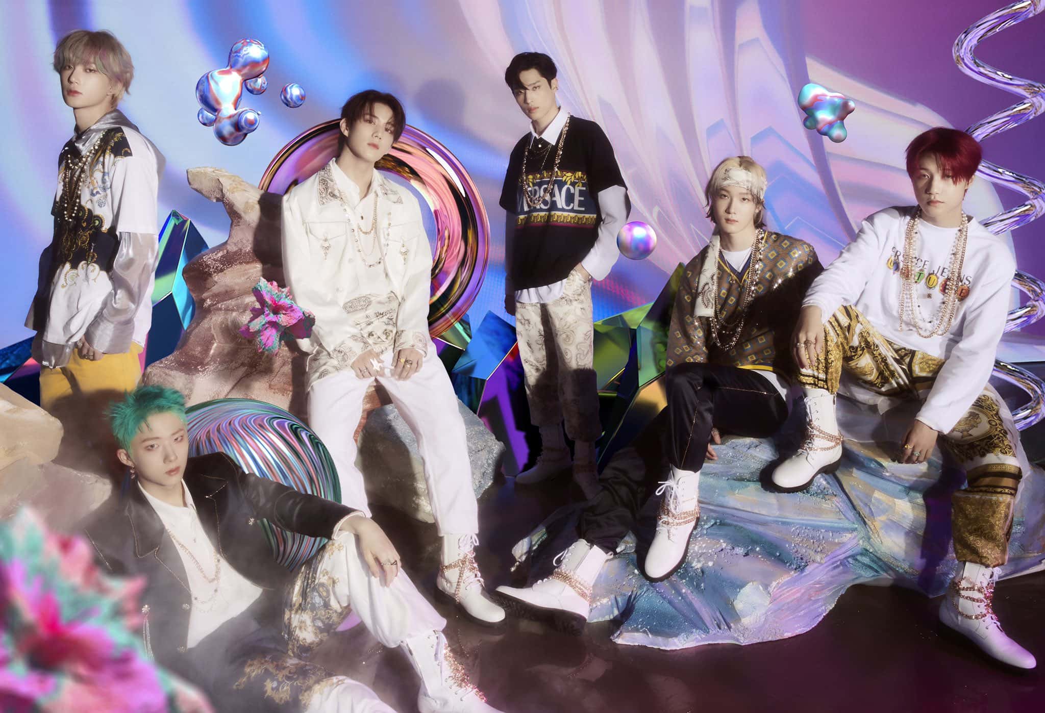 P1Harmony released three sets of concept photos that tease at the range of the dynamic album. They play to their strengths of sci-fi music videos with the first teaser as they are surrounded by metal graphics and cells which will create a new life in their ‘+WORLD’. The second teaser is similarly full of virtual space elements and holograms. The boys show a fun side in the last concept teaser as they play around in an empty but ornamental hall.