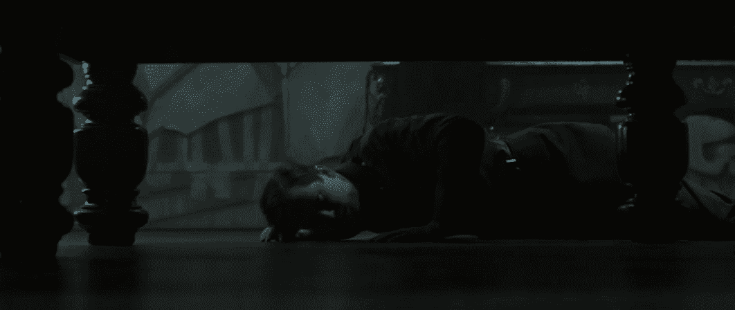 The whole room is horrified to see Harwood’s reaction and is in complete silence. As Greaves is pronounced dead, his commanding officer Sergeant Bennett (James Quinn) sees the body of one of his soldiers on the floor and orders his men to put Harwood into solitary confinement.