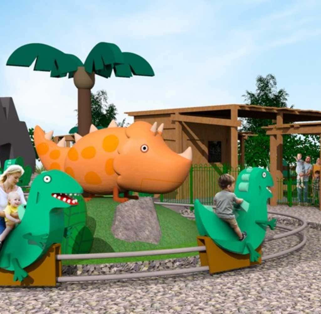 Welcome to Grampy Rabbit’s Dinosaur Park! Parents can ride along with their little explorers on this epic dino quest that will take you whizzing past smoking volcanoes and through pre-historic mountains.