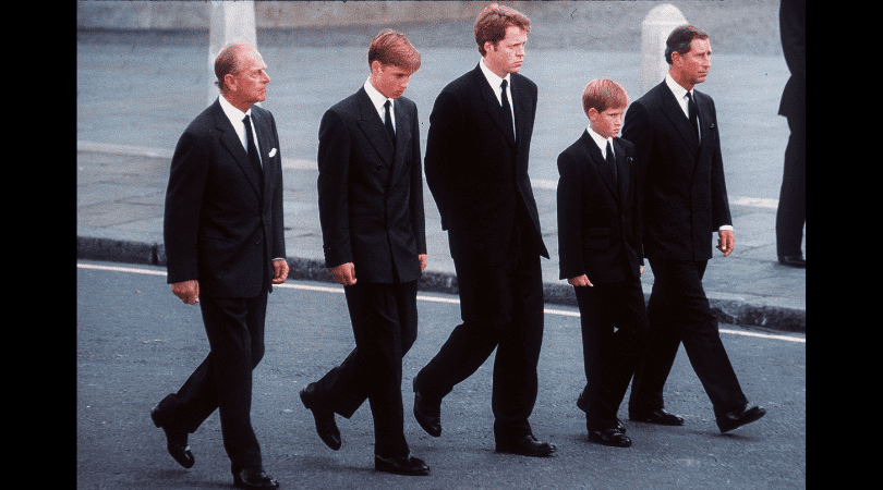 He walked with his father, Prince Charles, and brother, Prince William, who was 15 at the time, behind the coffin when it was being carried to Westminster Abbey. The televised moment has since drawn criticism as it put the young princes in the spotlight during their time of grief and was immortalized in the first episode of the Duke of Sussex's latest documentary on mental health.