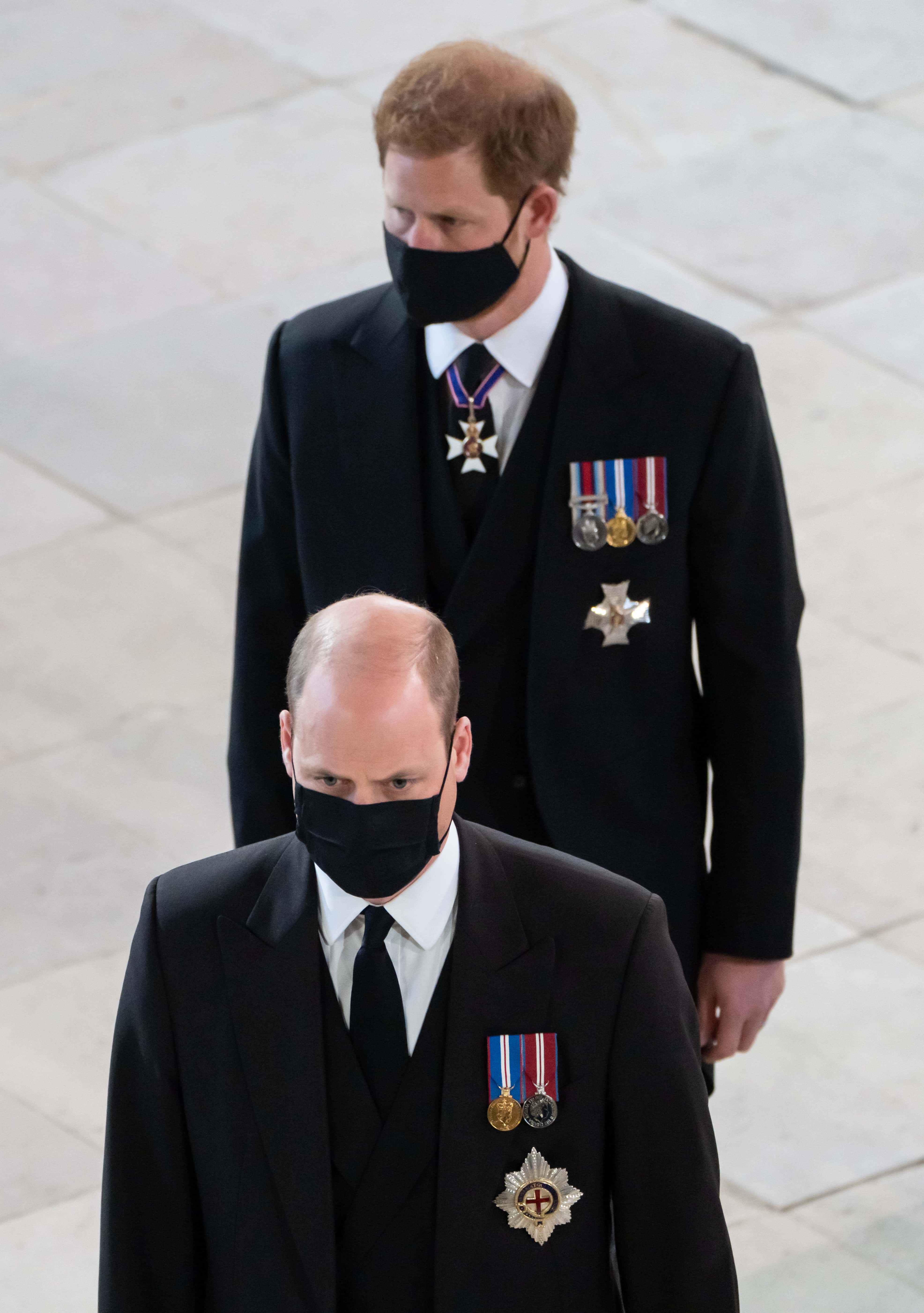 The brothers walked in solemn solidarity in the Duke of Edinburgh's funeral procession, dressed identically in black suits and ties on April 17. They were separated by their older cousin, Peter Phillips. The trio walked behind Prince Edward and Prince Andrew, and ahead of Vice-Admiral Sir Tim Laurence and the Earl of Snowdon. Prince Charles, Princess Anne, a personal protection officer, a private secretary, two pages and two valets were among the other members of the processional party.