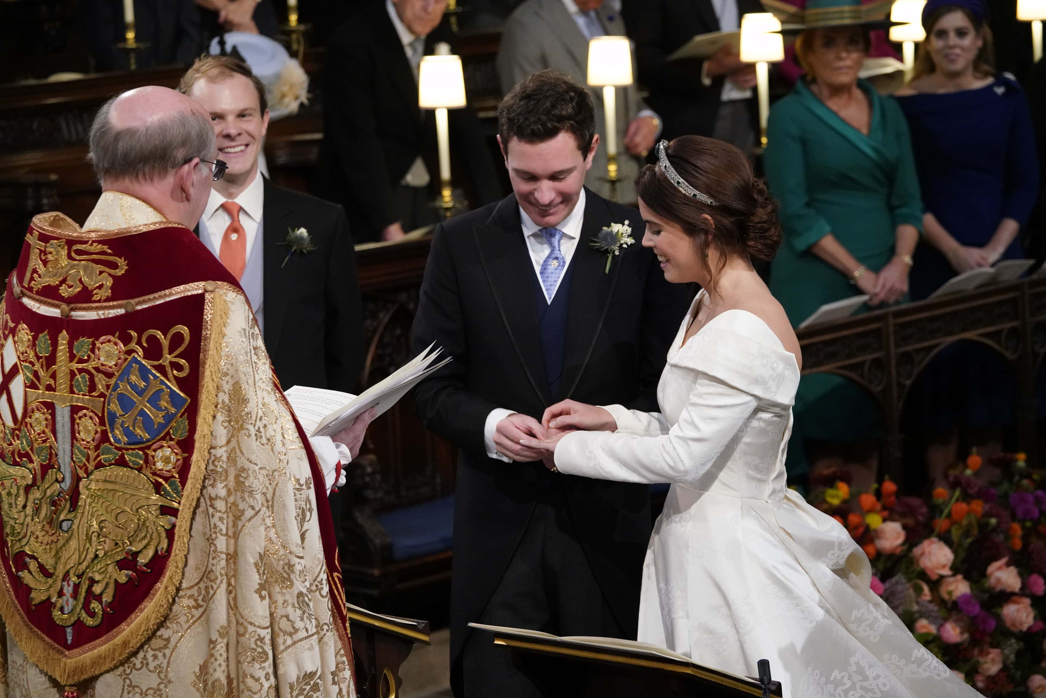 The Royal Family's Twitter account shared a statement that read: "The Duke and Duchess of York are delighted to announce the engagement of Princess Eugenie to Mr. Jack Brooksbank." "The wedding will take place in the Autumn of 2018 at St George's Chapel in Windsor, with further details to be announced in due course," it added. Eugenie's sister, Princess Beatrice was the maid-of-honor, while Thomas Brooksbank, Jack's brother, was the best man. Members of the Royal Philharmonic Orchestra and the State Trumpeter of the Household Cavalry trumpeters provided music for the service.