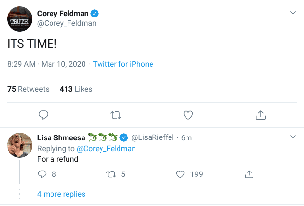 — Corey Feldman (@Corey_Feldman) March 10, 2020