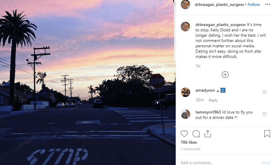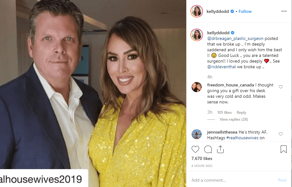 After Brian posted about their split on his page, Kelly too posted an Instagram post to announce their split officially and wished him luck. She posted, "drbreagan_plastic_surgeon posted that we broke up... I'm deeply saddened and I only wish him the best !! Good Luck, you are a talented surgeon!! I loved you deeply, See @rickleventhal we broke up."