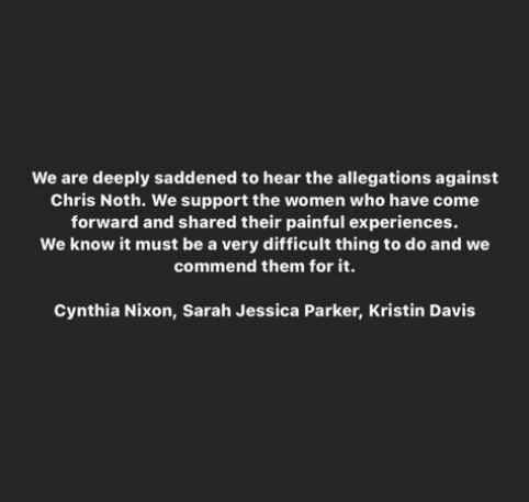 Taking to their Instagram stories, Sarah Jessica Parker and Cynthia Nixon wrote that they were “deeply saddened” over the matter and supported the women who came forward to share their painful experience. “We are deeply saddened to hear the allegations against Chris Noth. We support the women who have come forward and shared their painful experiences. We know it must be a very difficult thing to do and we commend them for it.” Kristin Davis, on the other hand, took to Twitter to share the same joint statement.