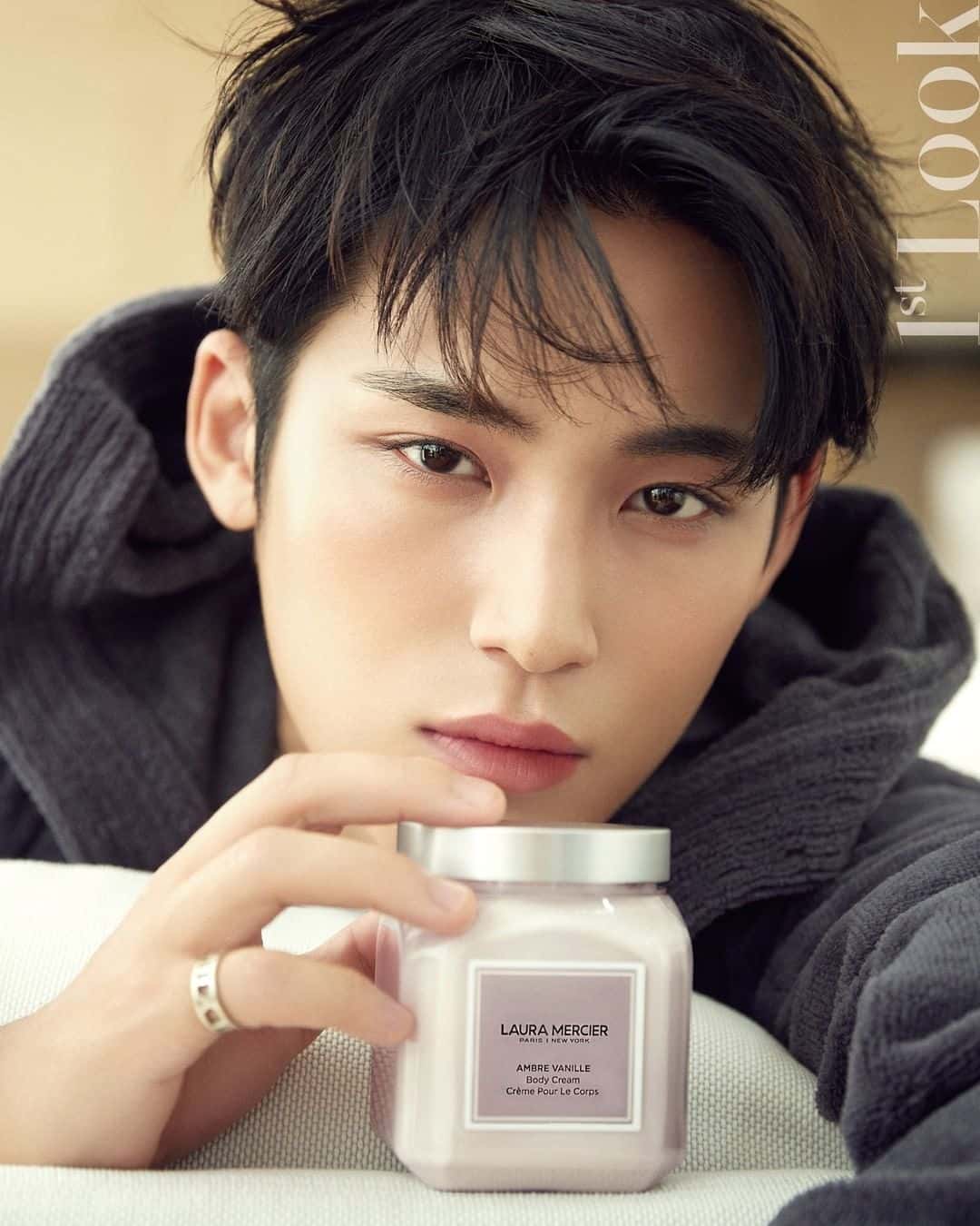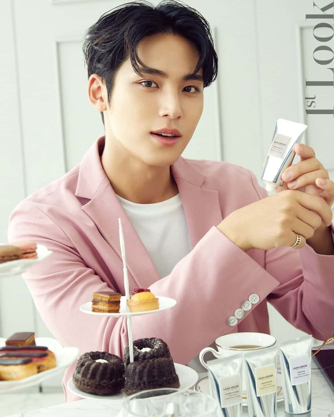 Laura Mercier, a French-American brand for cosmetics teamed up with Mingyu to endorse their products in his latest photoshoot with 1st Look magazine. Mingyu, promoting the cosmetic brand's skincare range, sports a dewy look that emphasizes his youthfulness. He is the latest member to have a solo photoshoot following Hoshi for Allure, Seungkwan for Elle and Dino for Esquire. Seventeen was also featured in D-icon magazine.