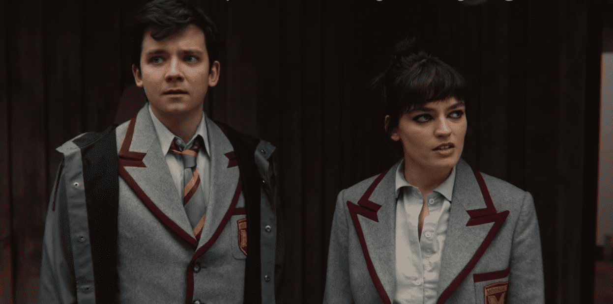 The matters resolve but unfortunately, Otis and Maeve are left behind. A few moments later, the teachers realize that two students have been left behind and they ask the driver to take a u-turn. Otis and Maeve are stuck at a gas station. Otis is really freaking out and saying that they need to get some help so that they can reach school. However, Maeve is amused after seeing Otis’ reaction.
