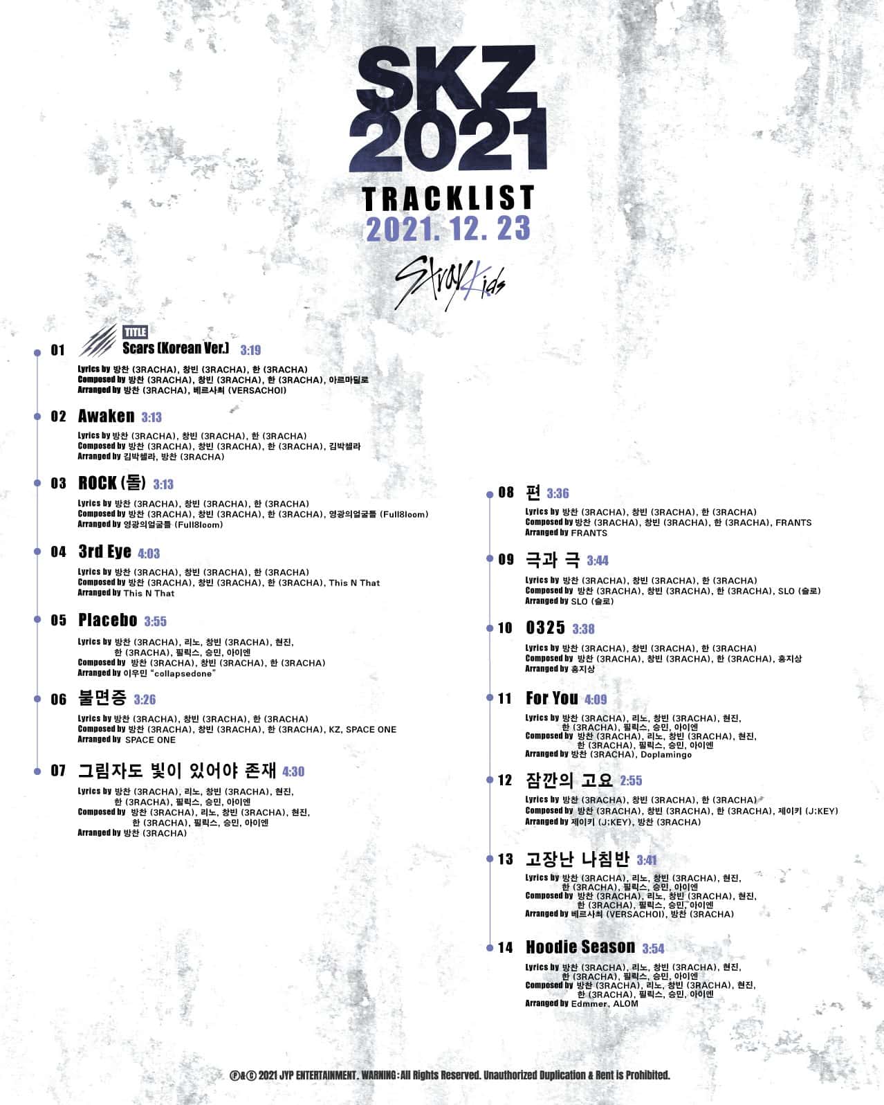 In the title song 'Scars (Korean Ver.)', the message is that Stray Kids bear wounds in the process of hard work and experience they have had but these wounds are now bearable, all thanks to their supportive fans. Only scars are left behind. The original Japanese single received a lot of love from fans while the song ranked first on iTunes song charts in 32 overseas regions based on the cumulative record from October 6 to 9, 2021.