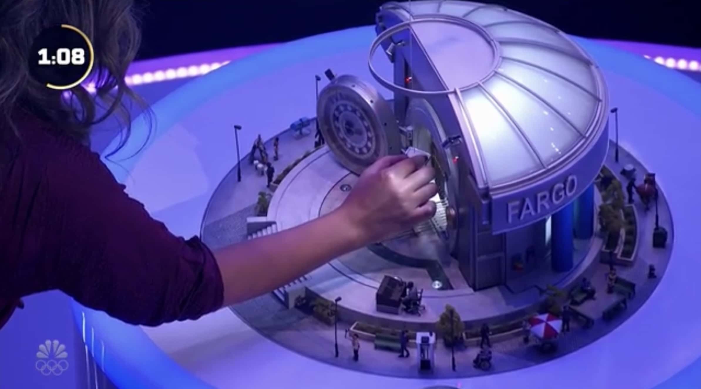 The next round was 'Cart of Gold' where the players had to land three gold nuggets in an oncoming mini-train model train. Feeling confident after having won the previous challenge, Boathy decided to give it a go, after two practice rounds, one of which cost her team $20,000. She successfully landed a win, bumping up their grand winning total to $170,000.