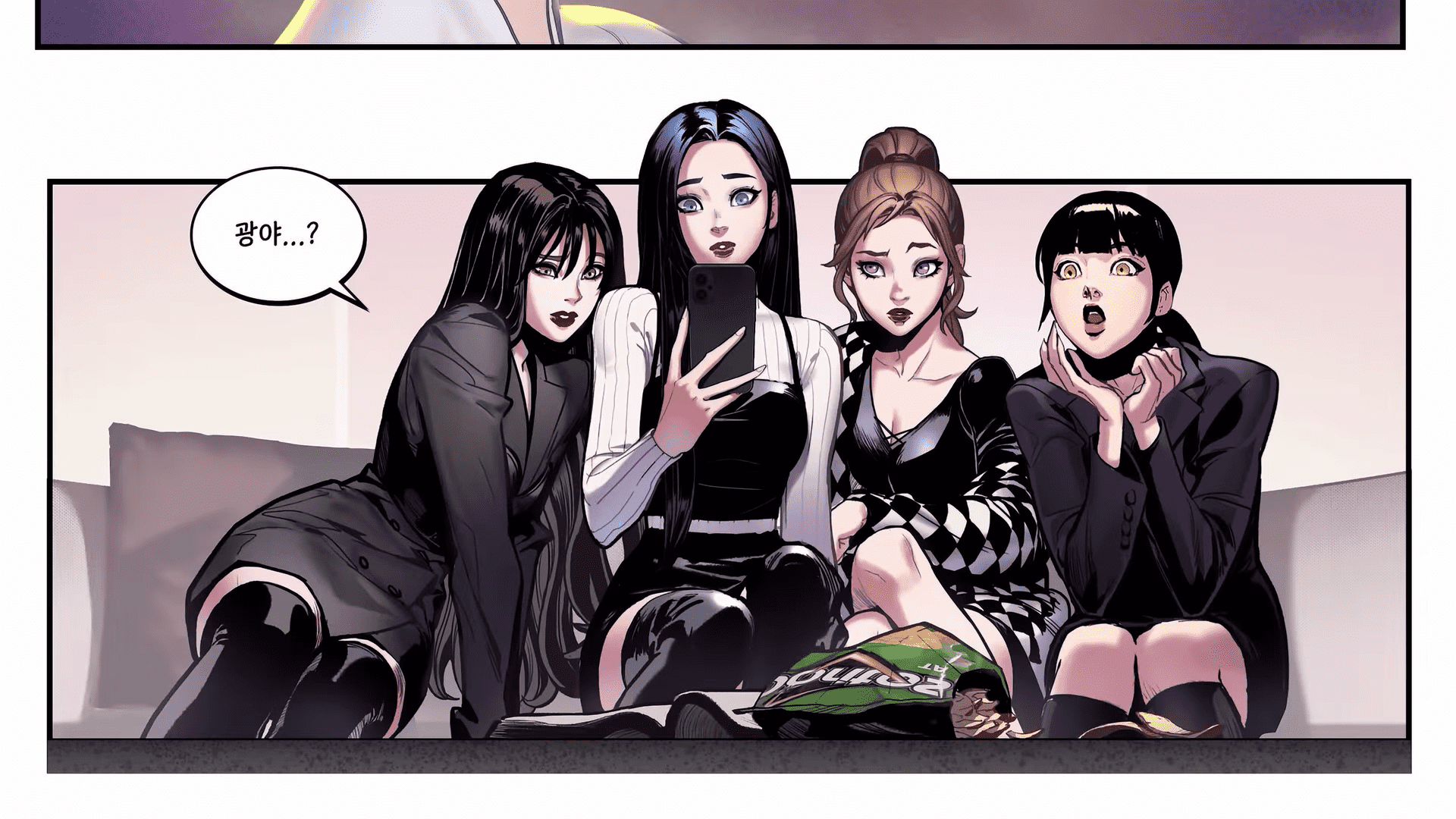In the 'SMCU Ep.2 Next Level' episode, aespa boards the train to Kwangya which gets hijacked by the Black Mamba. The giant snake plays mind games with each of the members, trying to break them down by making them face their darkest fears. In Karina’s mind, a cartoon version of her is surrounded by broken mirrors, in which we see her crying and being overwhelmed by her insecurities and unable to be the perfect girl she claims to be on social media. The Black Mamba strikes a chord as it refers to the ageism and impossible beauty standards prevalent in the K-pop industry.