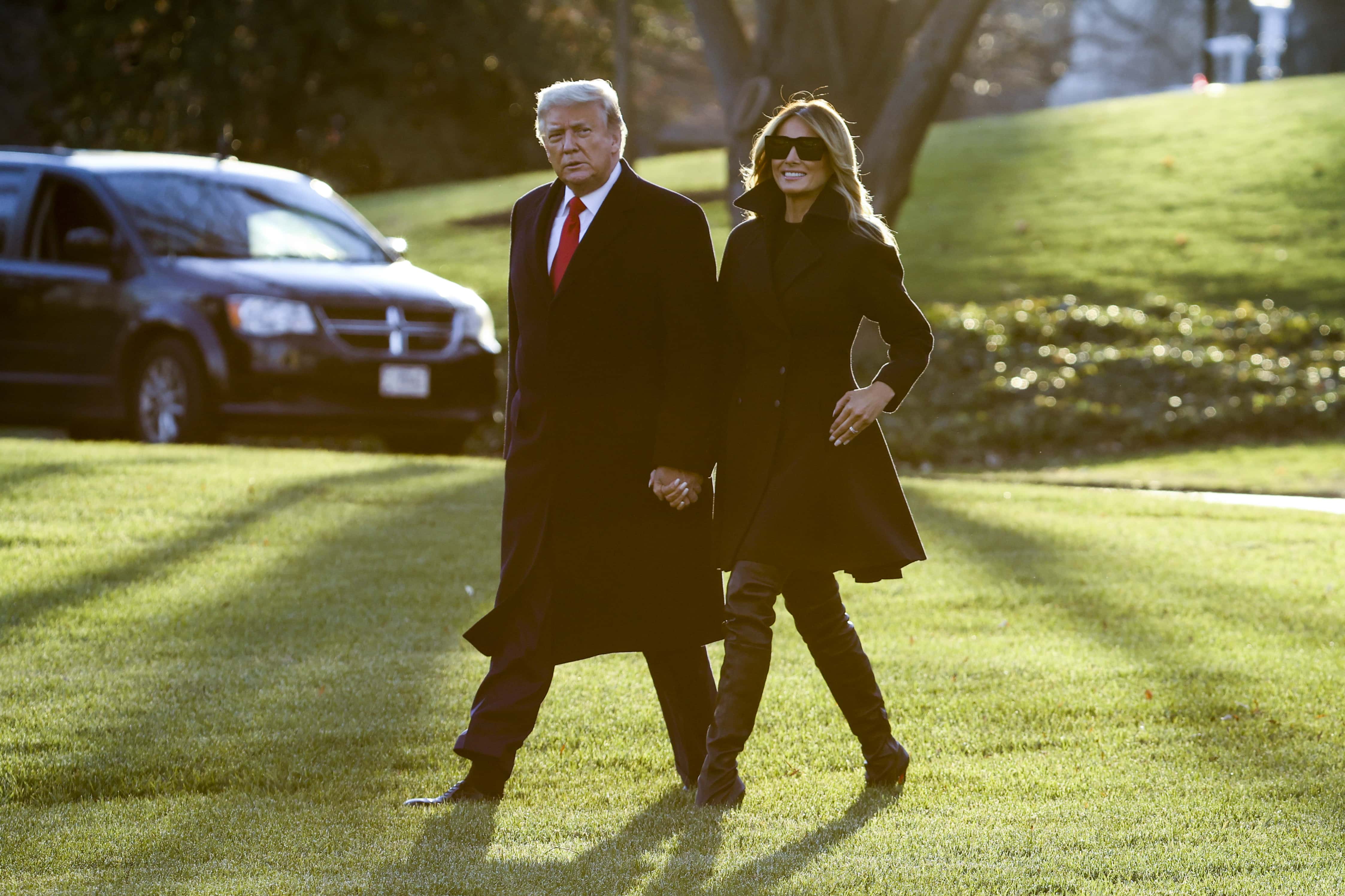 President Donald Trump and first lady Melania Trump were seen leaving the White House to fly to Mar-a-Lago resort in Florida for Christmas on Wednesday evening, December 23. Melania was seen sporting a stunning outfit which featured a pair of thigh-high leather boots as she walked alongside Trump. She paired the boots with a double-breasted cascading back wool coat by Azzedine Alaia as she and Trump walked across the White House lawn as they headed for Trump's Mar-a-Lago resort.