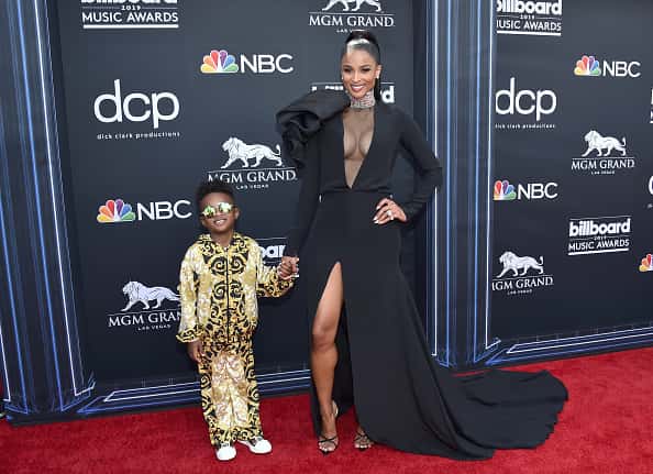 Ciara stepped on the carpet with her four-year-old son Future Zahir Wilburn — both looking absolutely stunning. She wore a black floor-length dress with a navel deep neckline and a front slit and a shoulder ruffle. Gotta love the classic Ciara pony too!