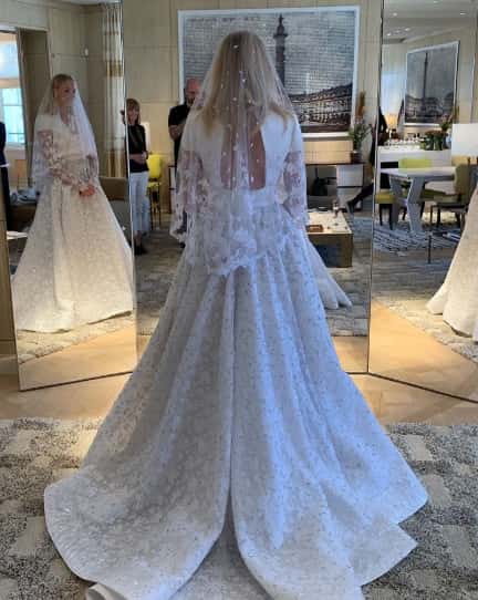 Sophie looked absolutely stunning in the traditional gown by Louis Vuitton featuring a skirt and capped sleeves which she paired with a long floating veil. Nicolas Ghesquiere of Louis Vuitton also shared a closer look at the bride's attire on his Instagram page.